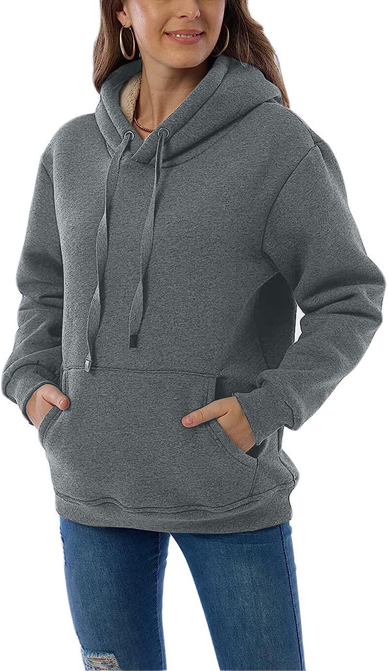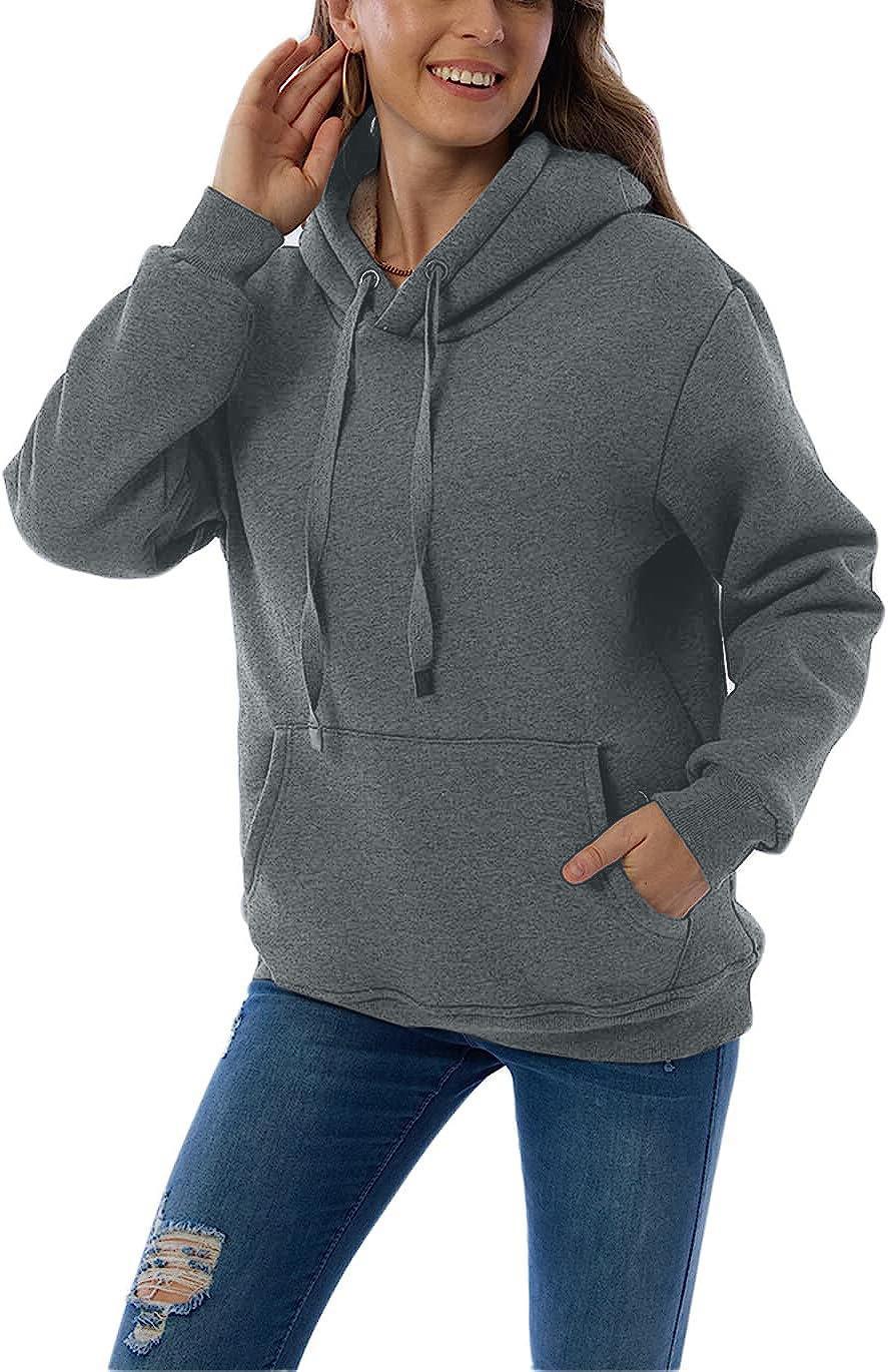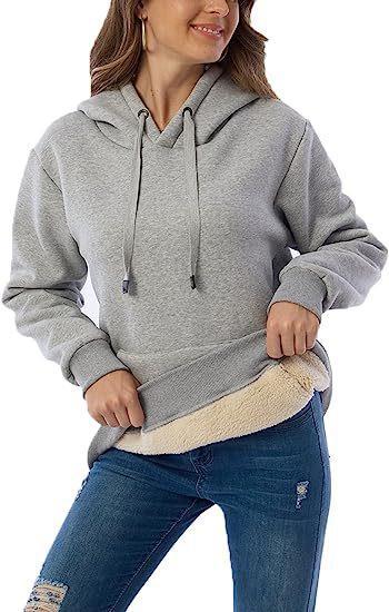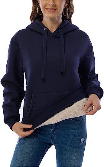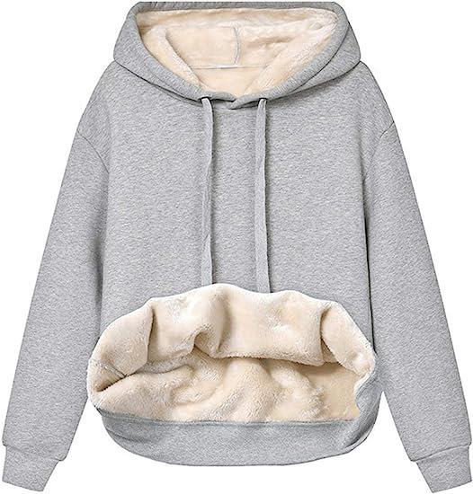 Womens Warm Fleece Pocketed Hooded Sweatshirt For Sports