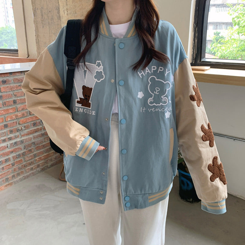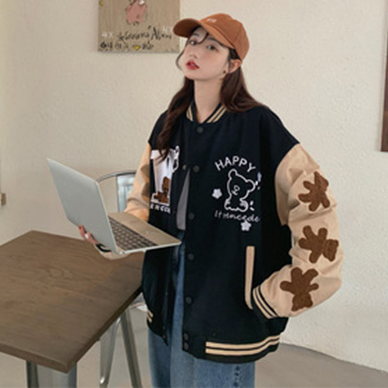 Autumn Embroidery Bear Trend Jacket Baseball Uniform