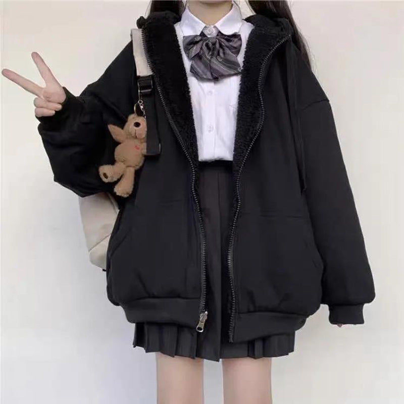 Casual Loose Versatile Zip Solid Hooded Jacket