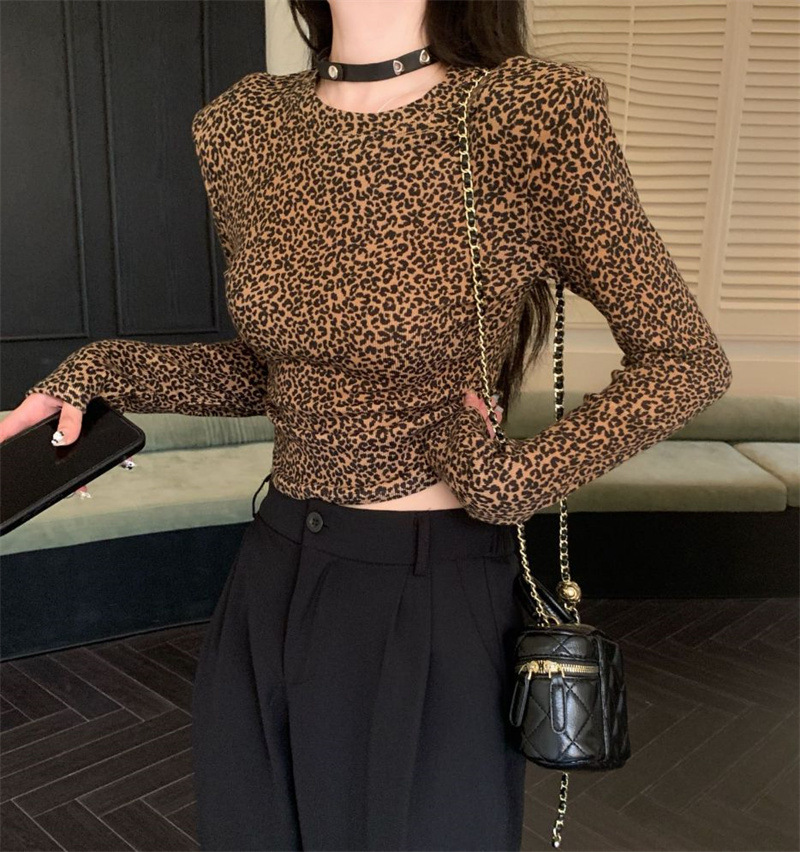 French-style Slimming, Chic Round-neck Leopard-print Top