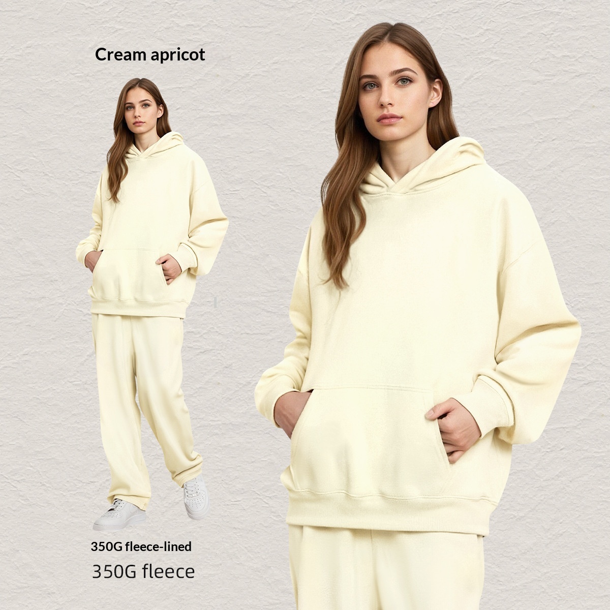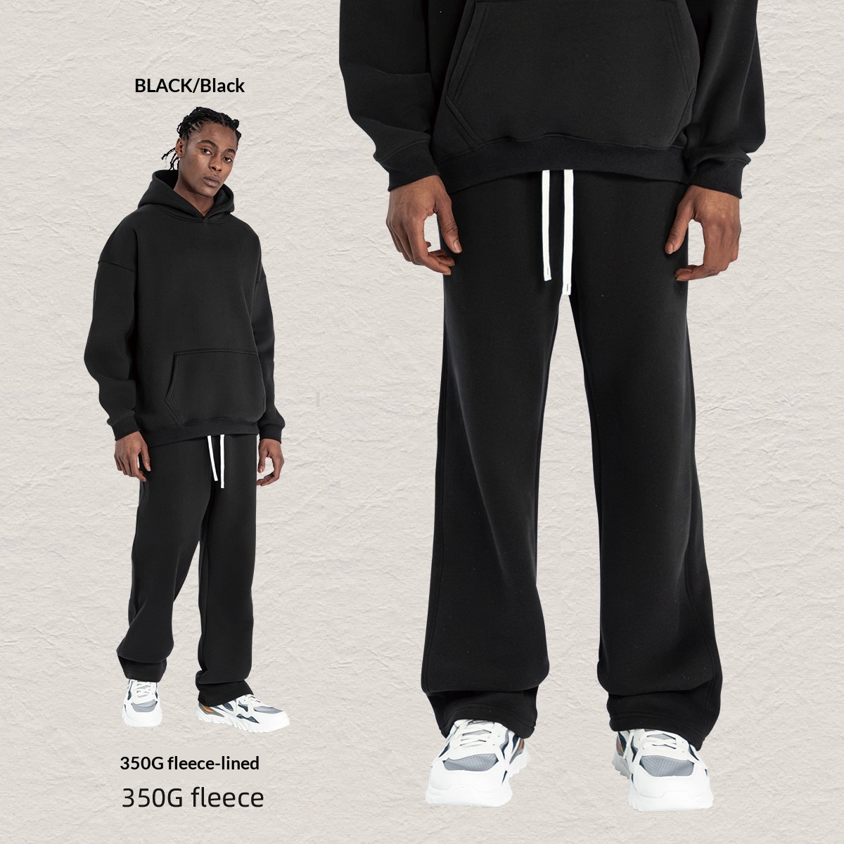 Men's Hooded Sweatshirt Fleece-lined Loose Sweatshirt Set