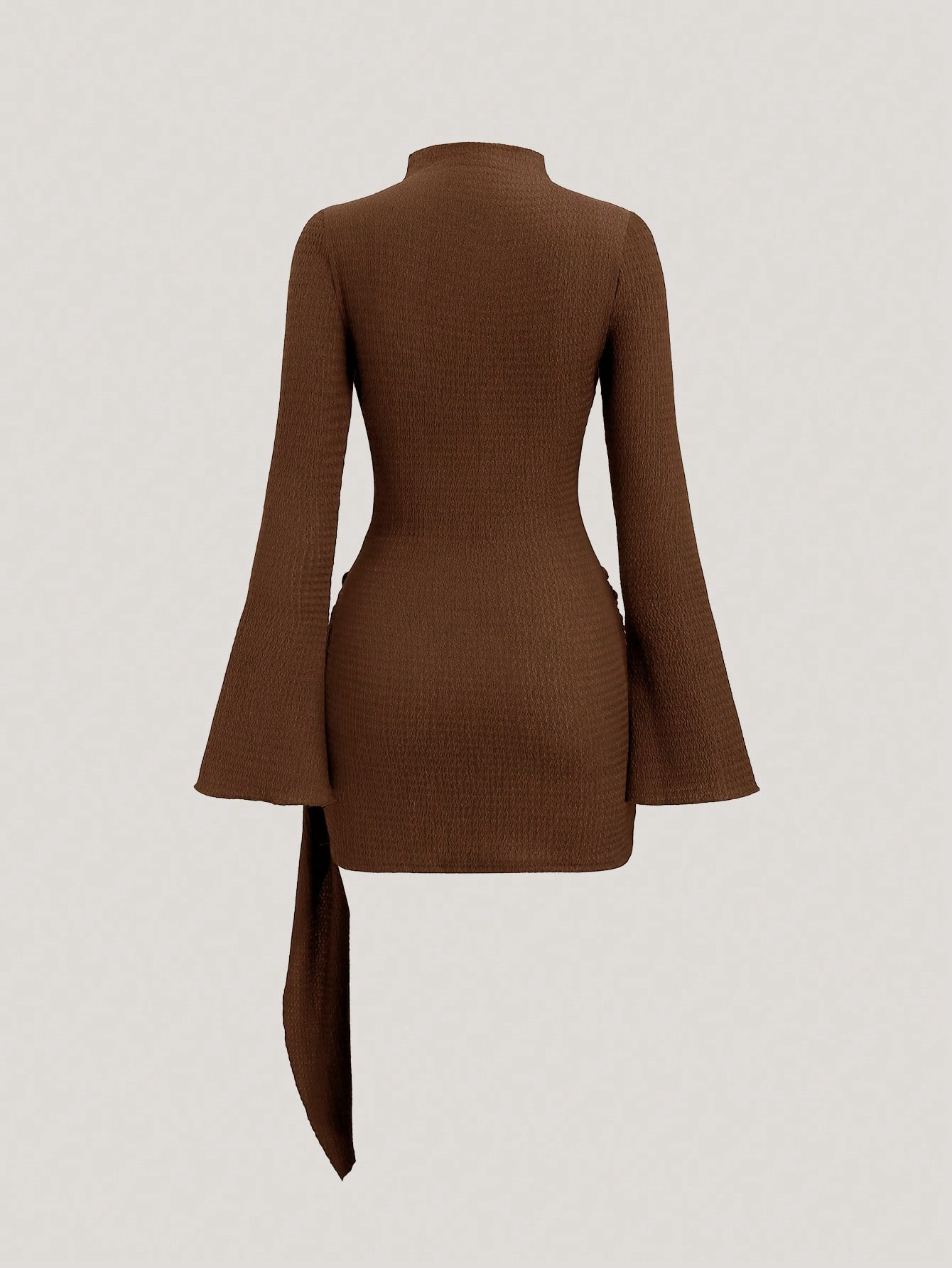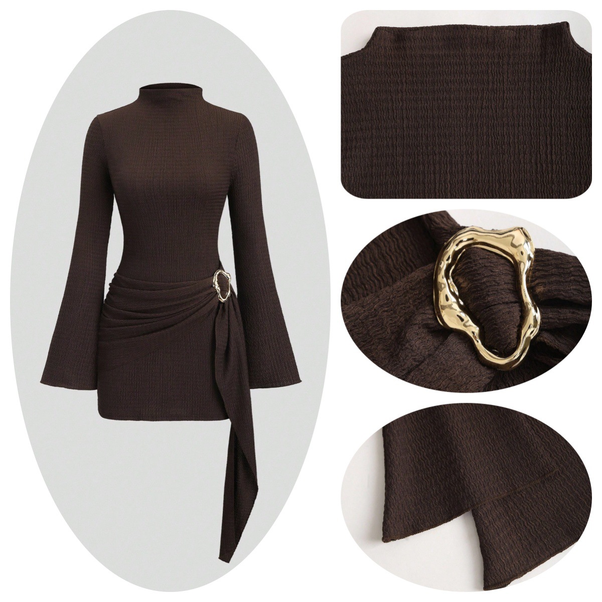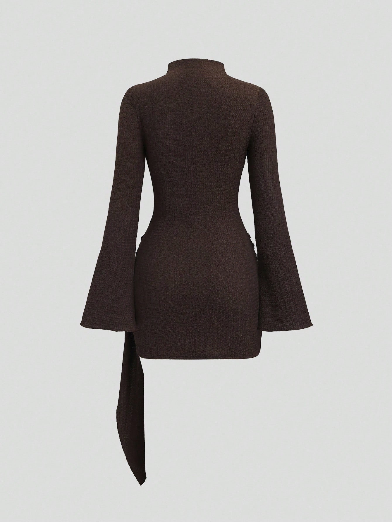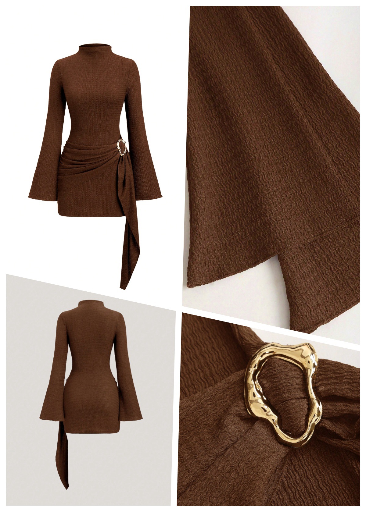 Metal Waist Buckle Minimalist Slightly Flared Sleeve Slim Fit Midi Dress