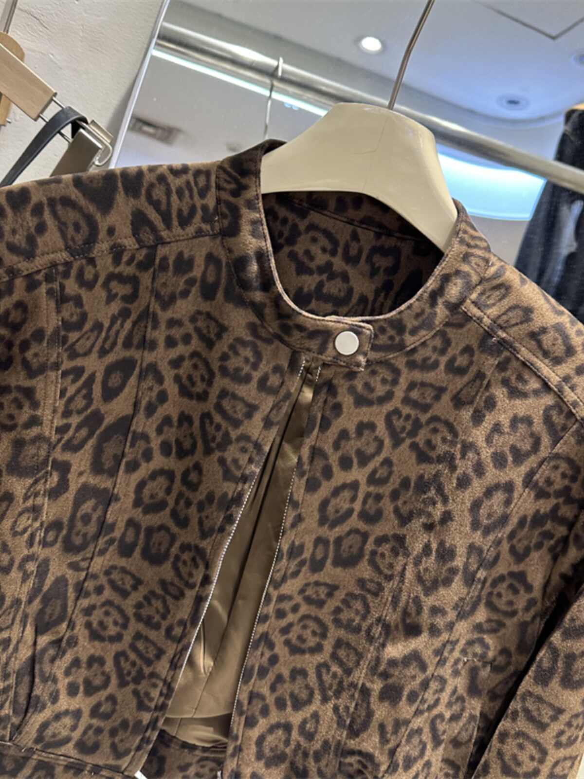 Slimming Long Sleeve Hong Kong Style Short Leopard Print Coat