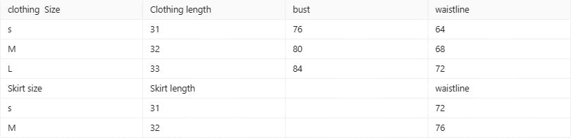 Skirt length: short skirt