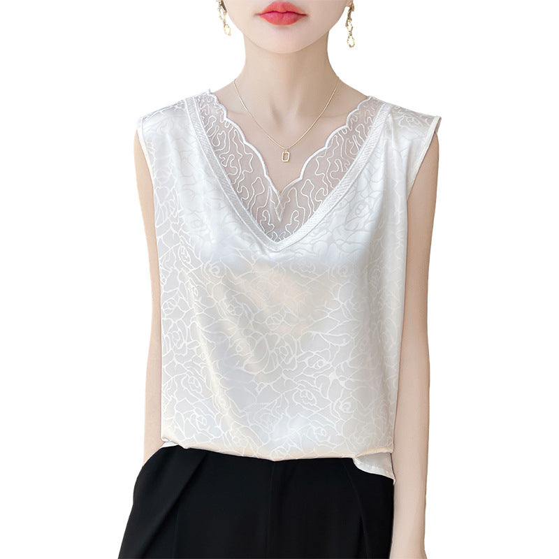 V-neck Cropped Mesh-panelled Sleeveless Tank Top