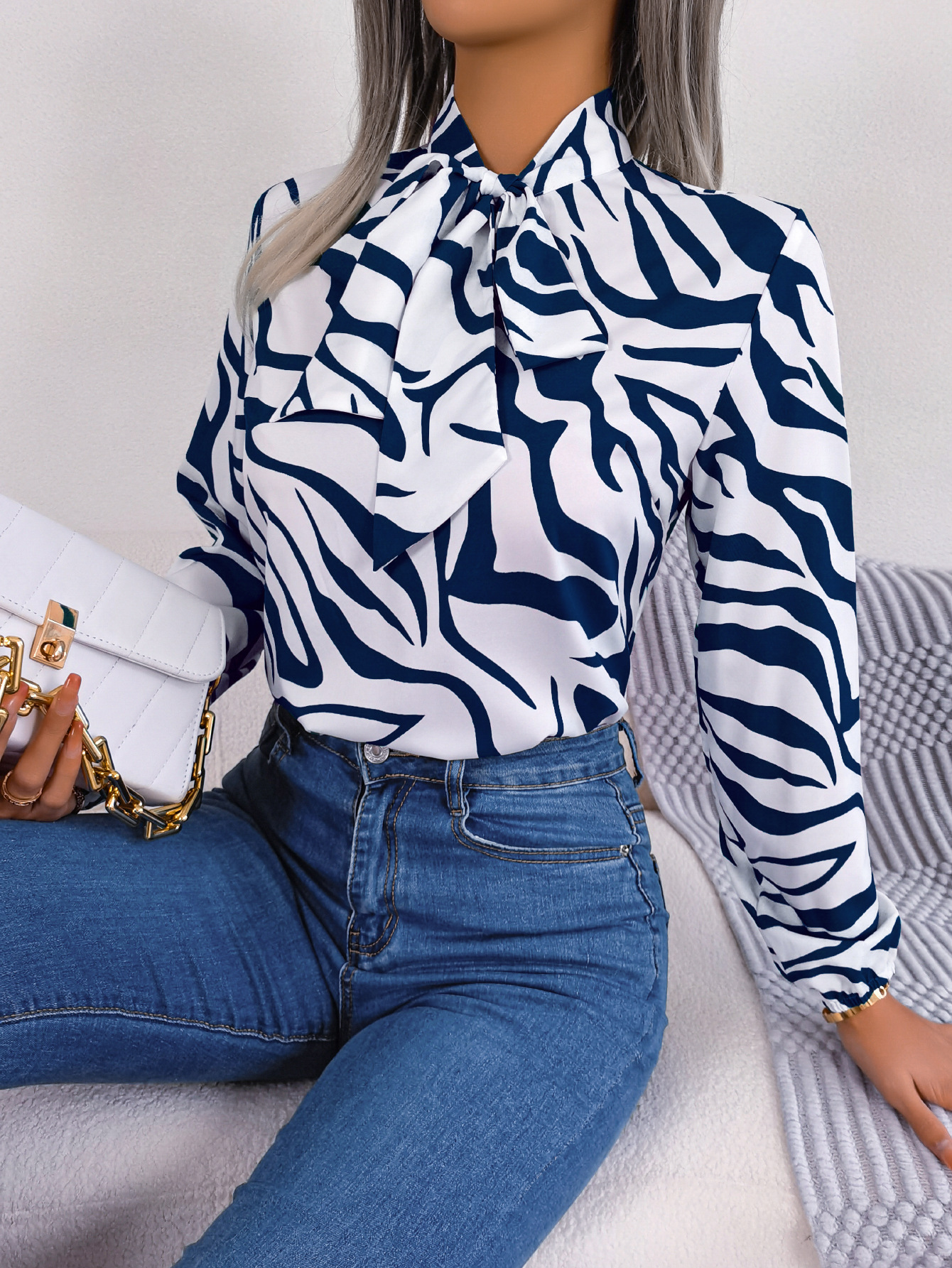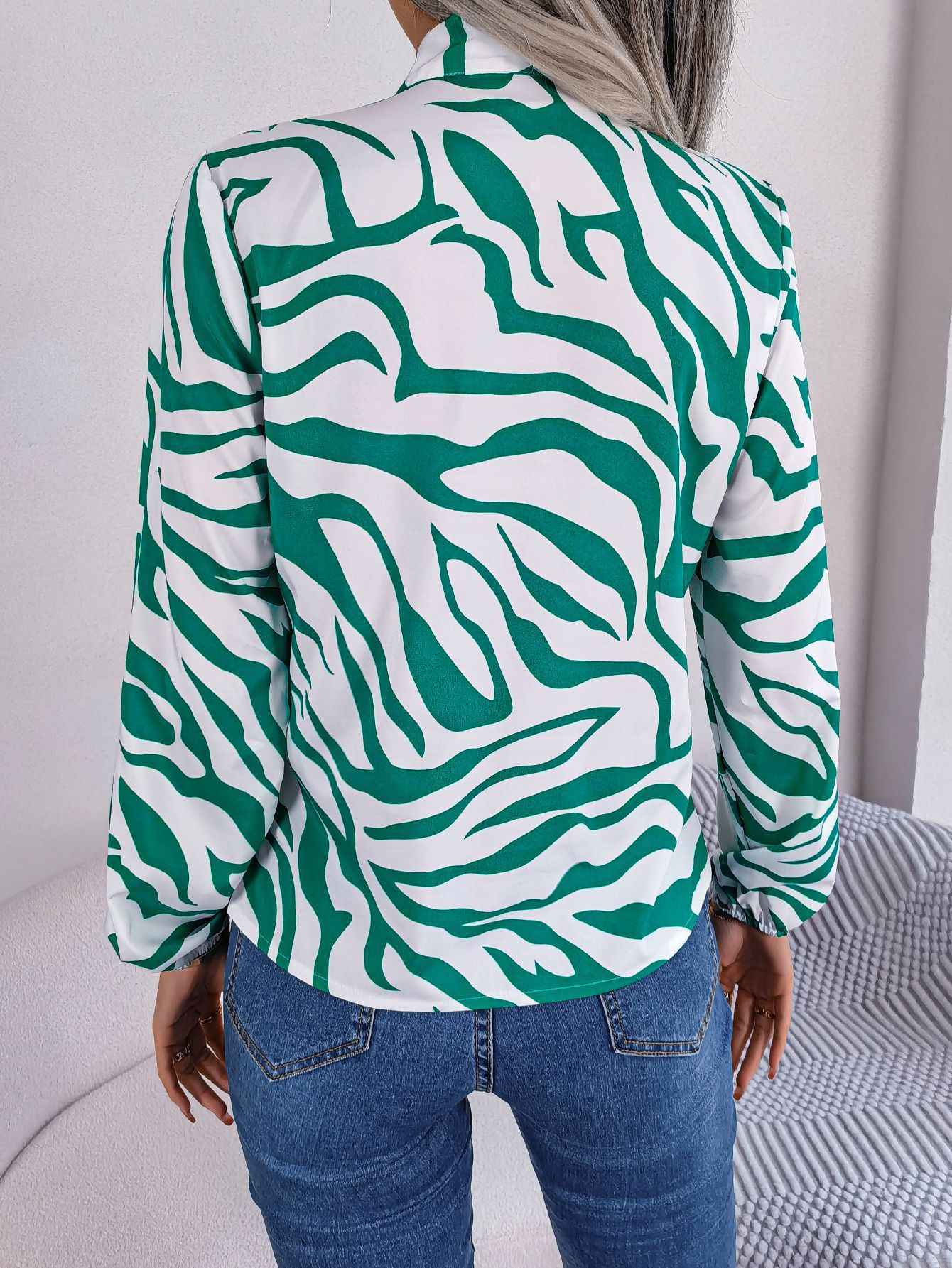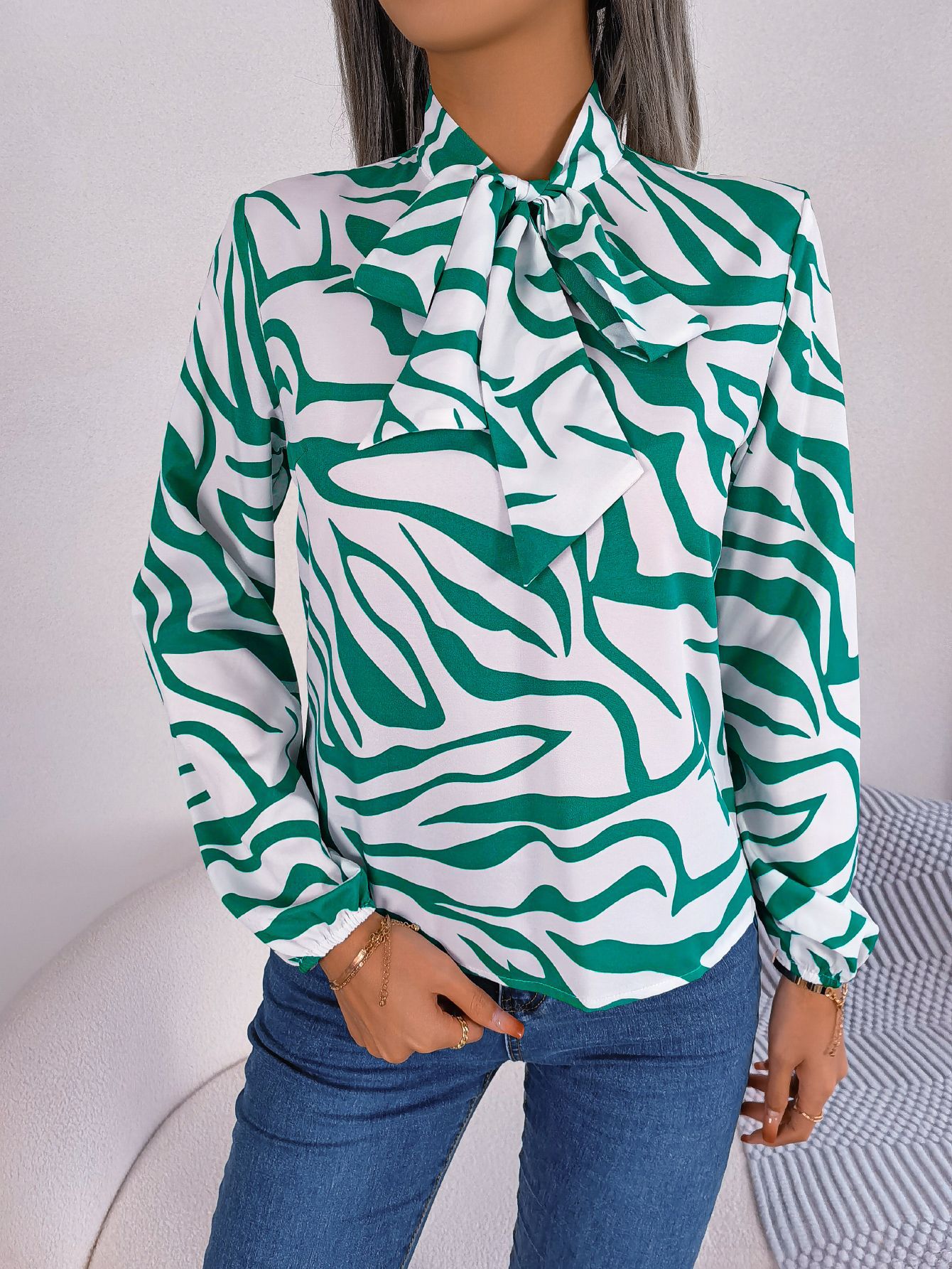 Women's Elegant Color Block Stripe Tie Waist Lantern Sleeve Chiffon Top