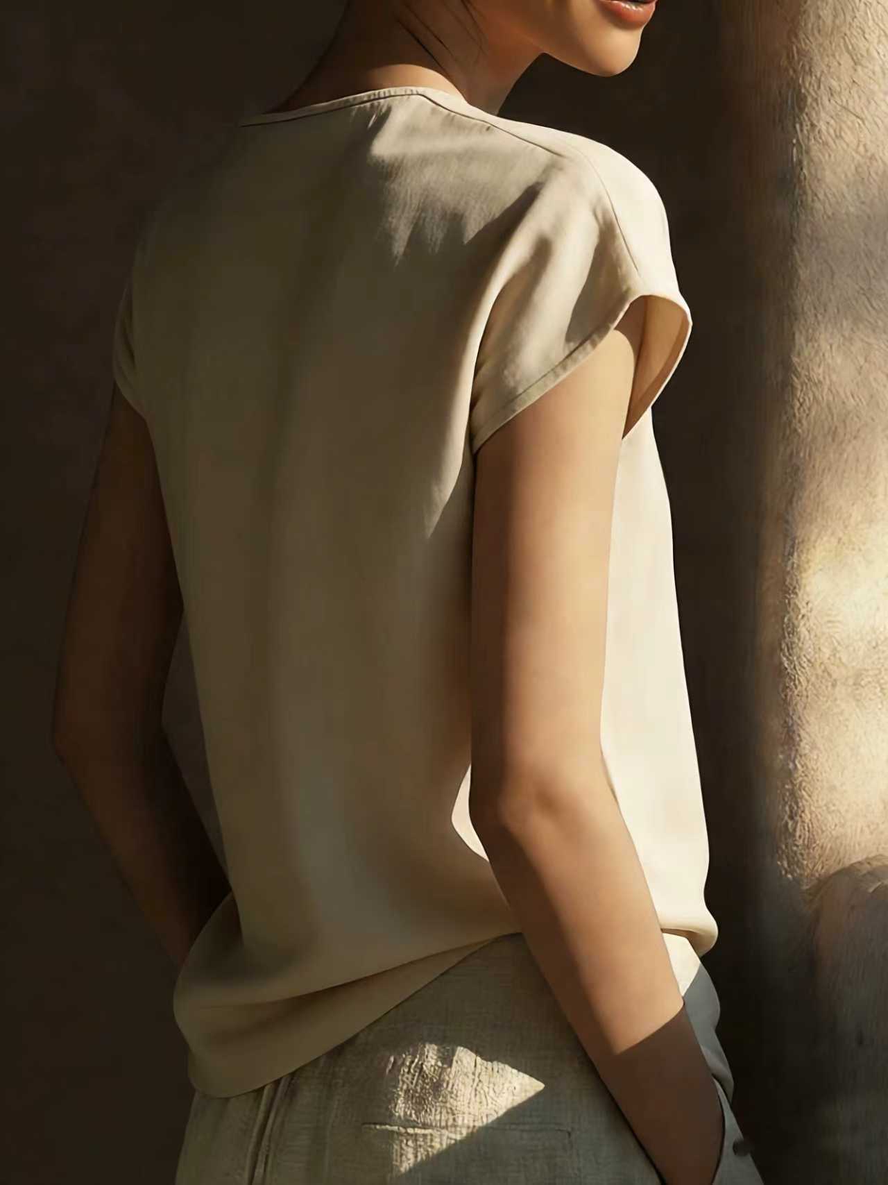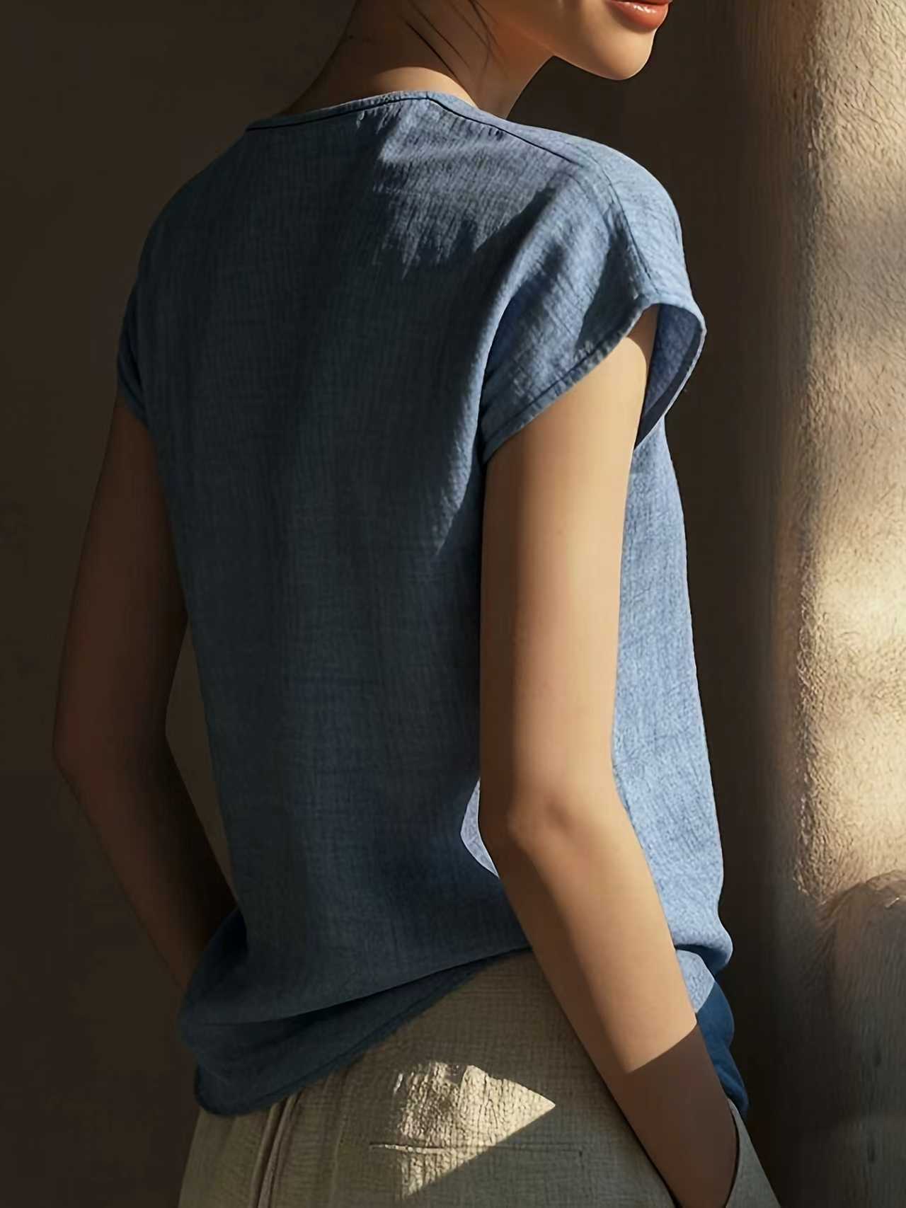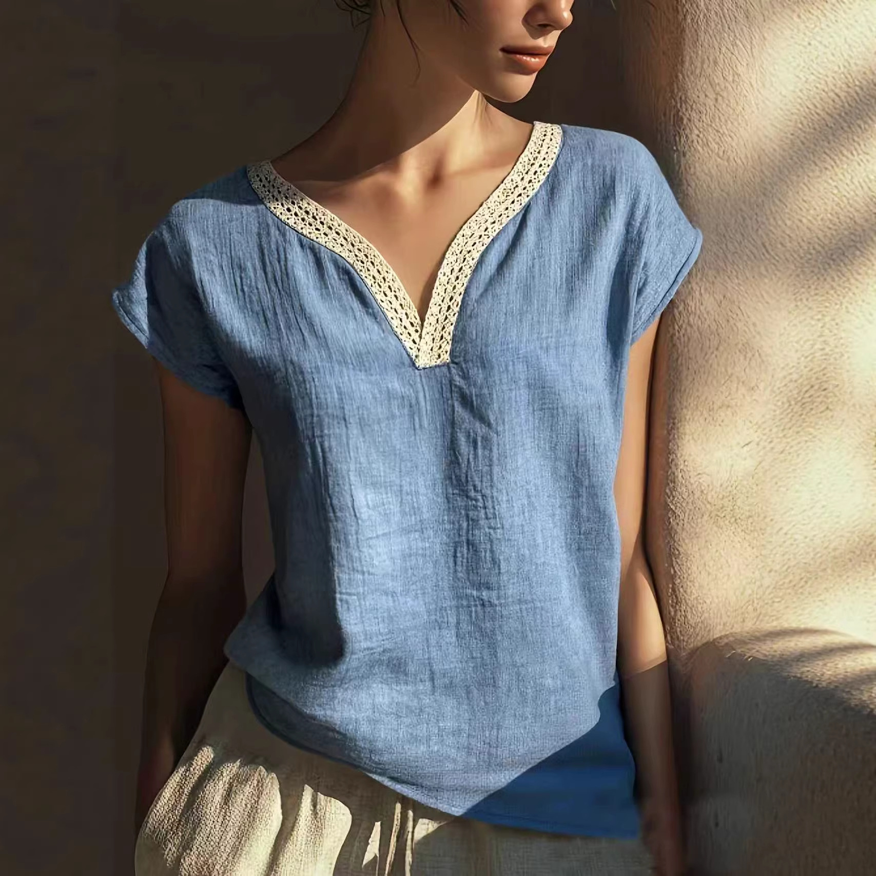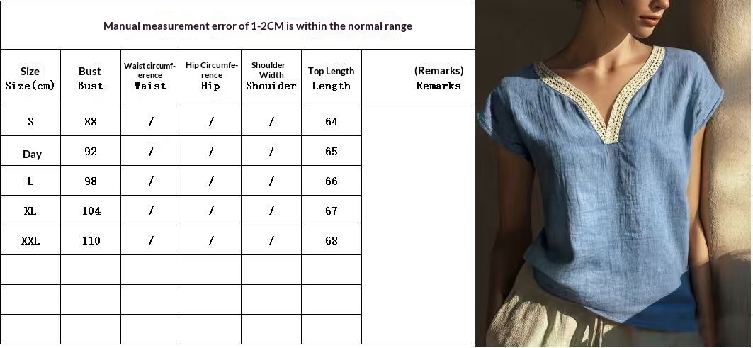 Bohemian Vintage Lace V-Neck Cotton-Linen Blouse