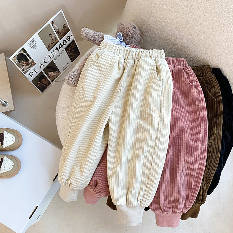 Children's Feet, Close-up Warm Corduroy And Velvet Pants Boys And Girls Leisure