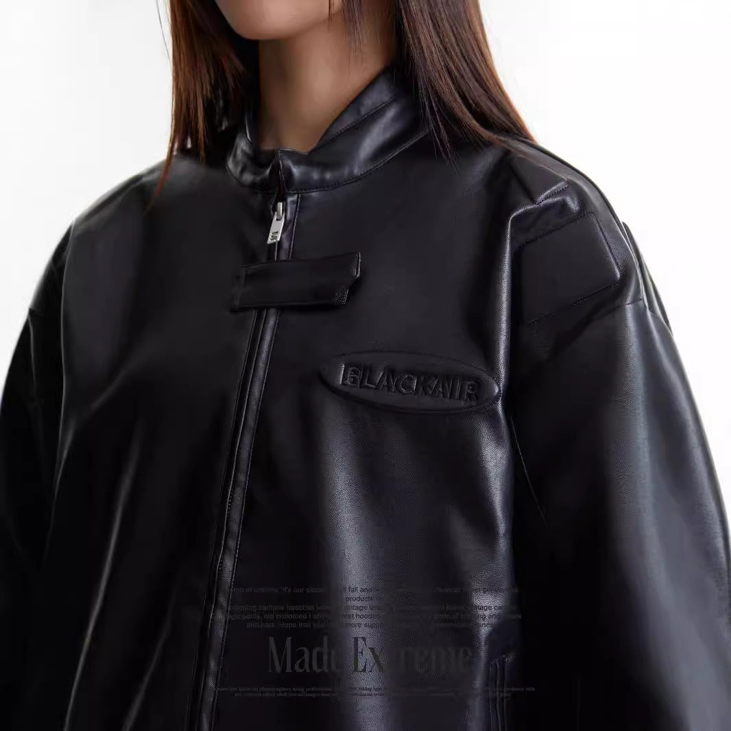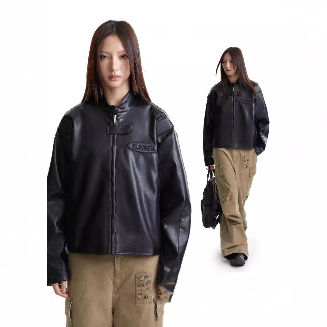 Motorcycle Clothing PU Leather Zip Turtleneck Jacket Men's And Women's Coats