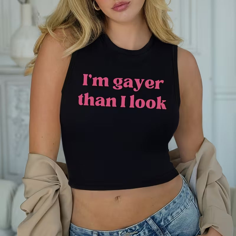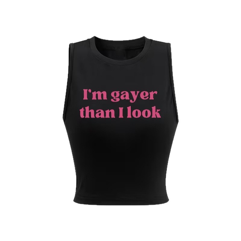 New Street-Style Letter-Print Crop Vest For Women