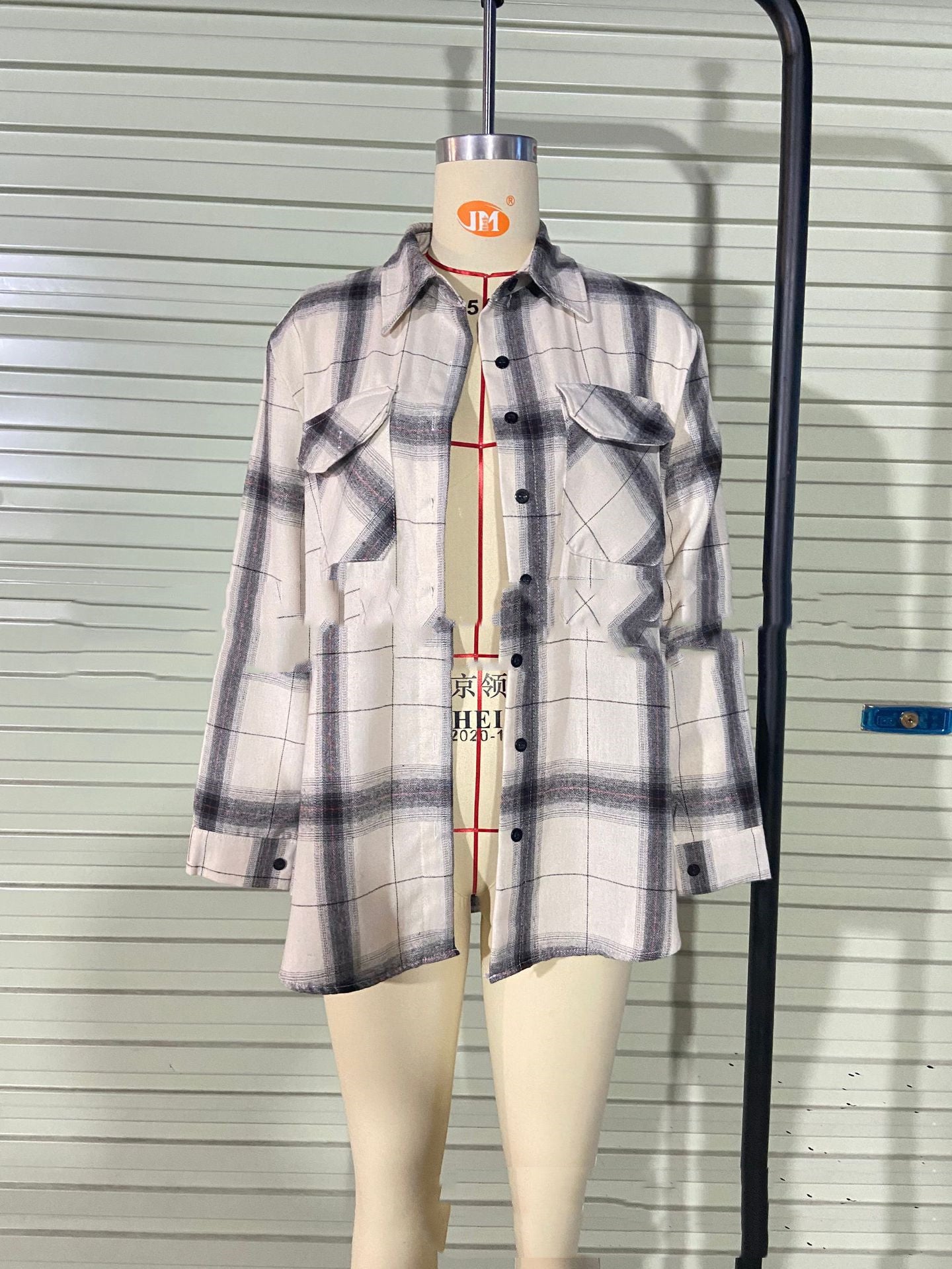 New Women's Fashion Black And White Plaid Long-sleeved Shirt Jacket
