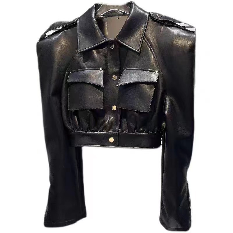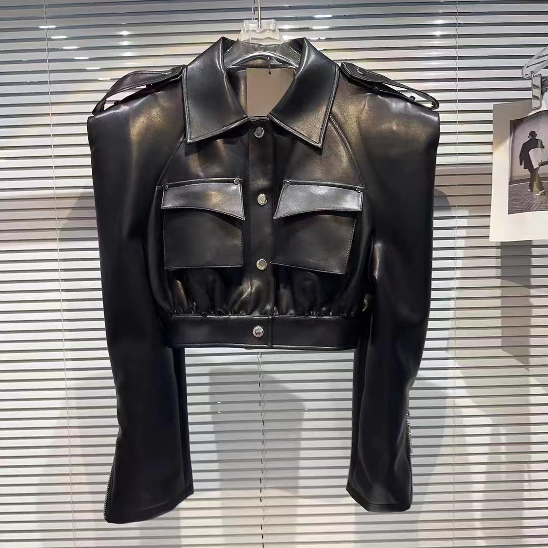 Short Motorcycle Clothing Leather Long-sleeved Coat Fried Street Fashion PU Leather Jacket