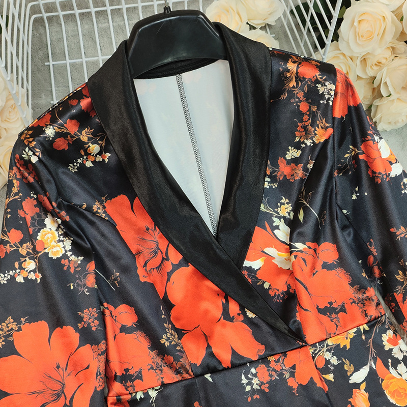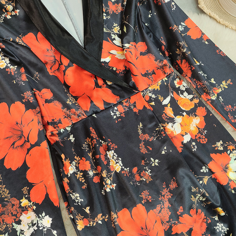 Womens Printed V-Neck Floral Long-Sleeve Mid-Length Bodycon Dress