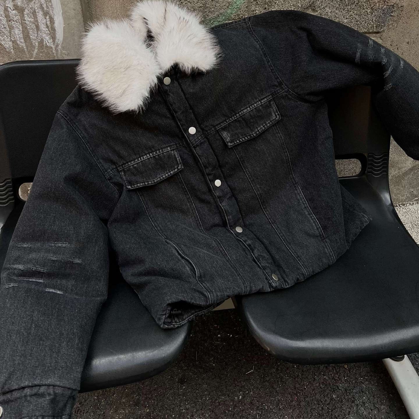 American High Quality Fur Collar Denim Cotton Coat Jacket