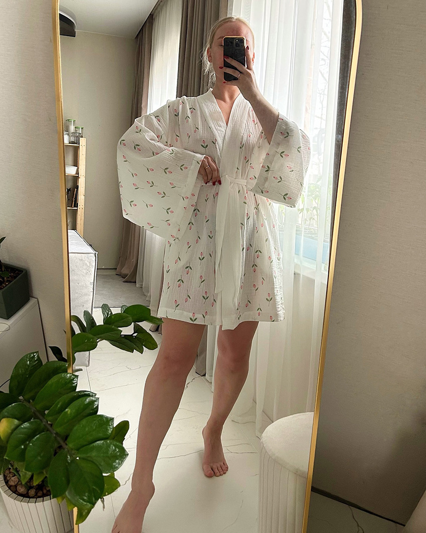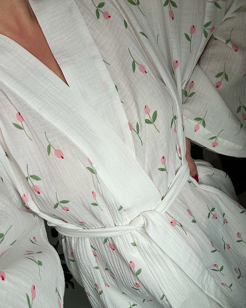 AutumnWinter Tulip-Print Long-Sleeve NightgownBathrobe