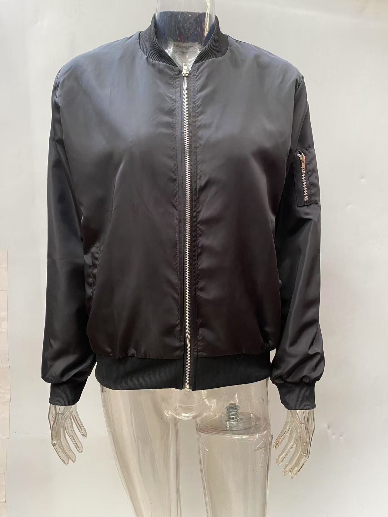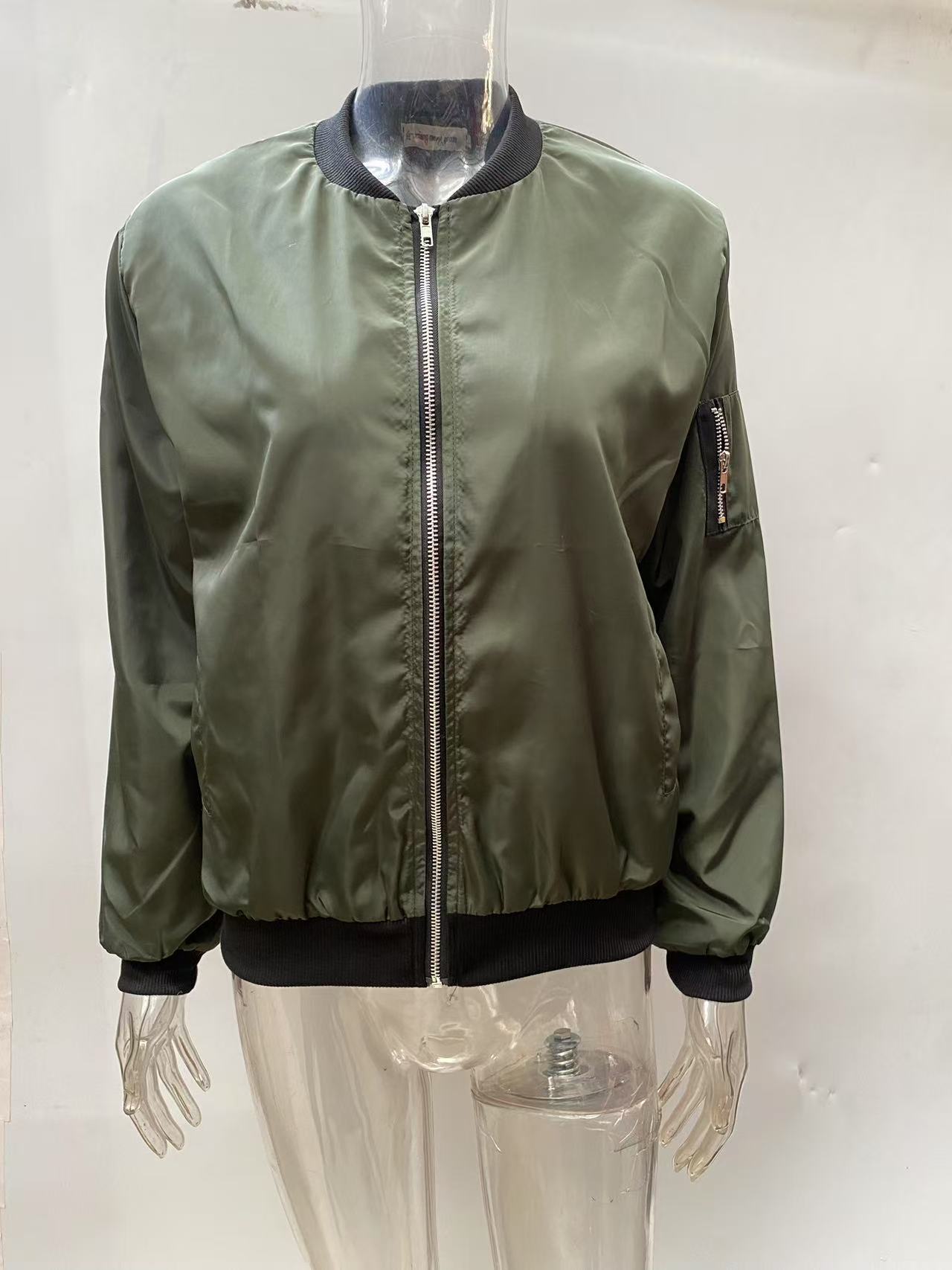 New Autumn Solid-Color Womens Fashionable Zippered Outer Jacket In European