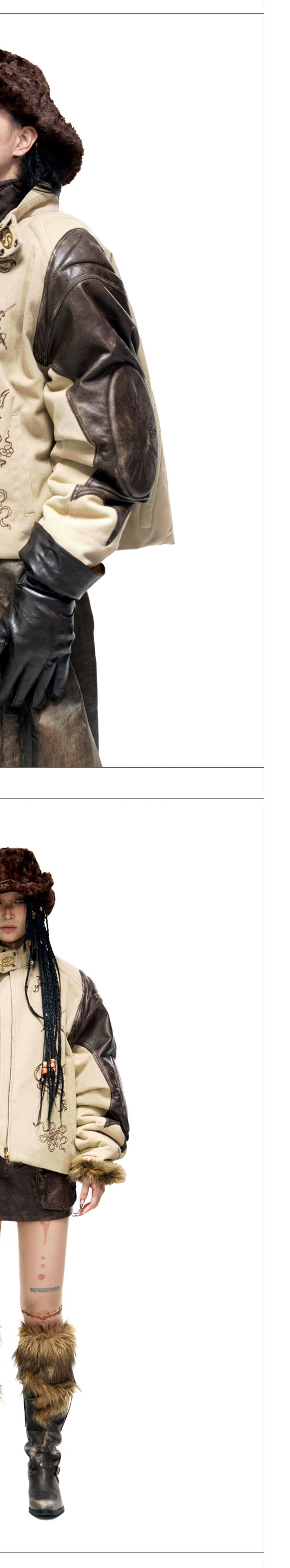 Totem-inspired Leather-and-cotton Patchwork Jacket
