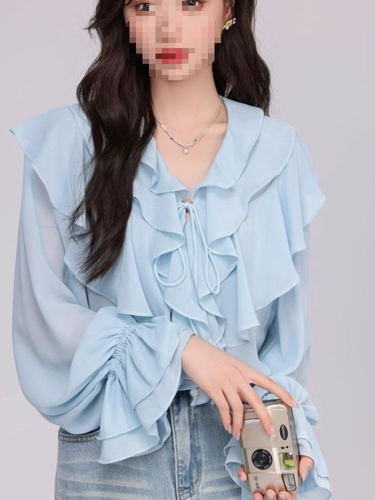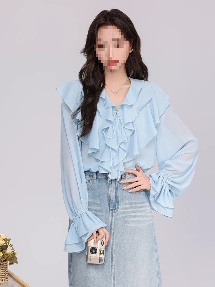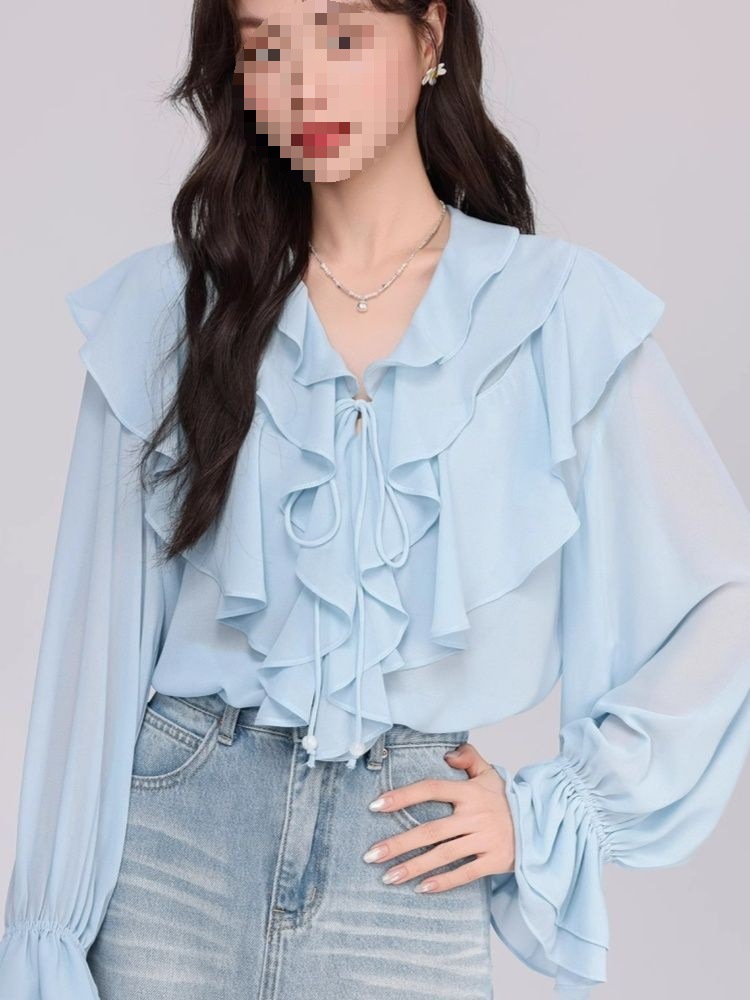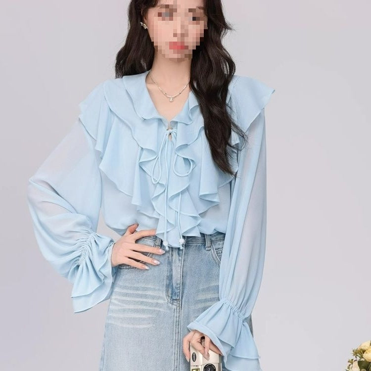 Women's Fashionable Loose Ruffle-Trimmed Shirt