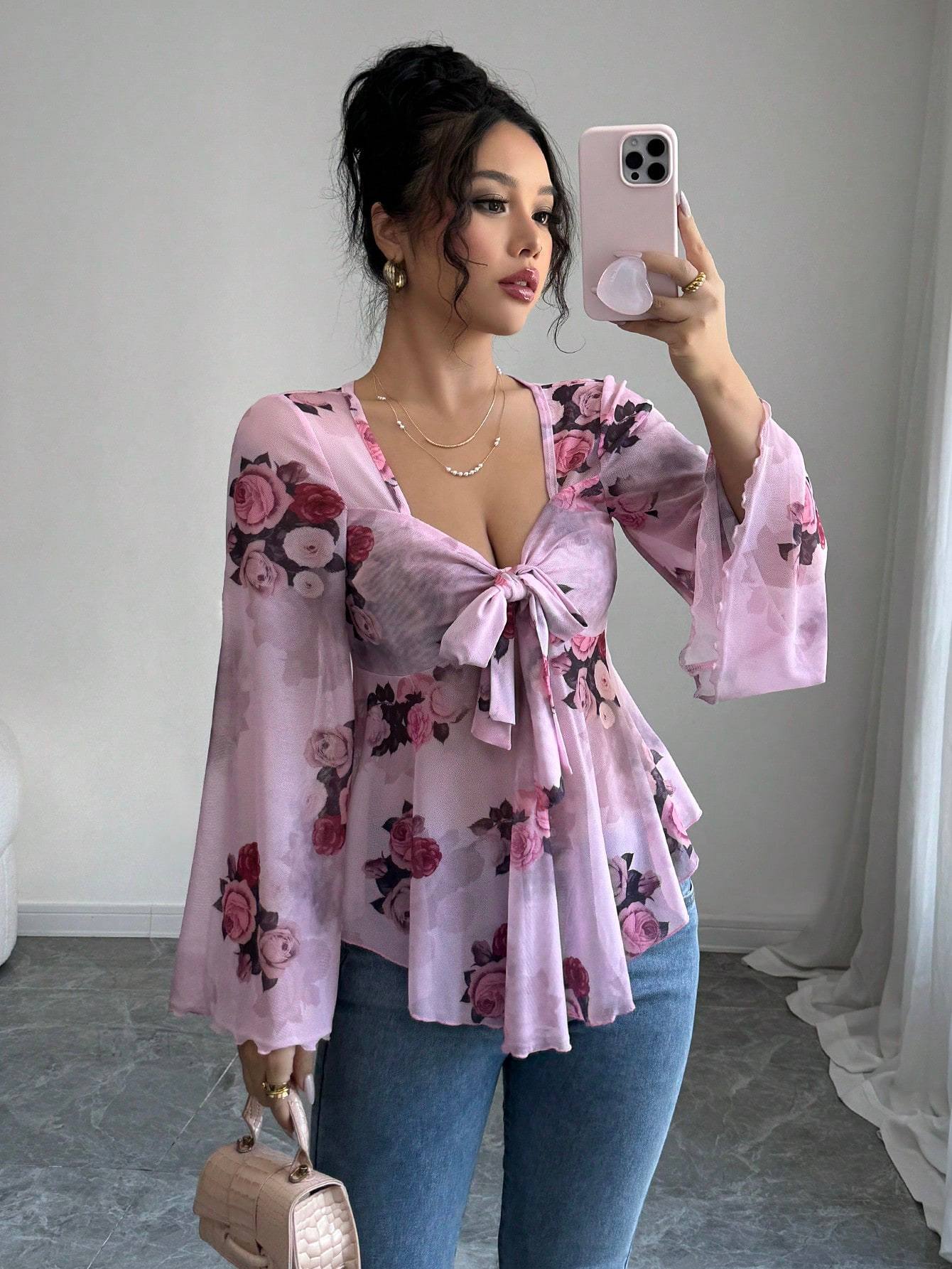 Women's French-style Printed Mesh Elegant Casual Shirt