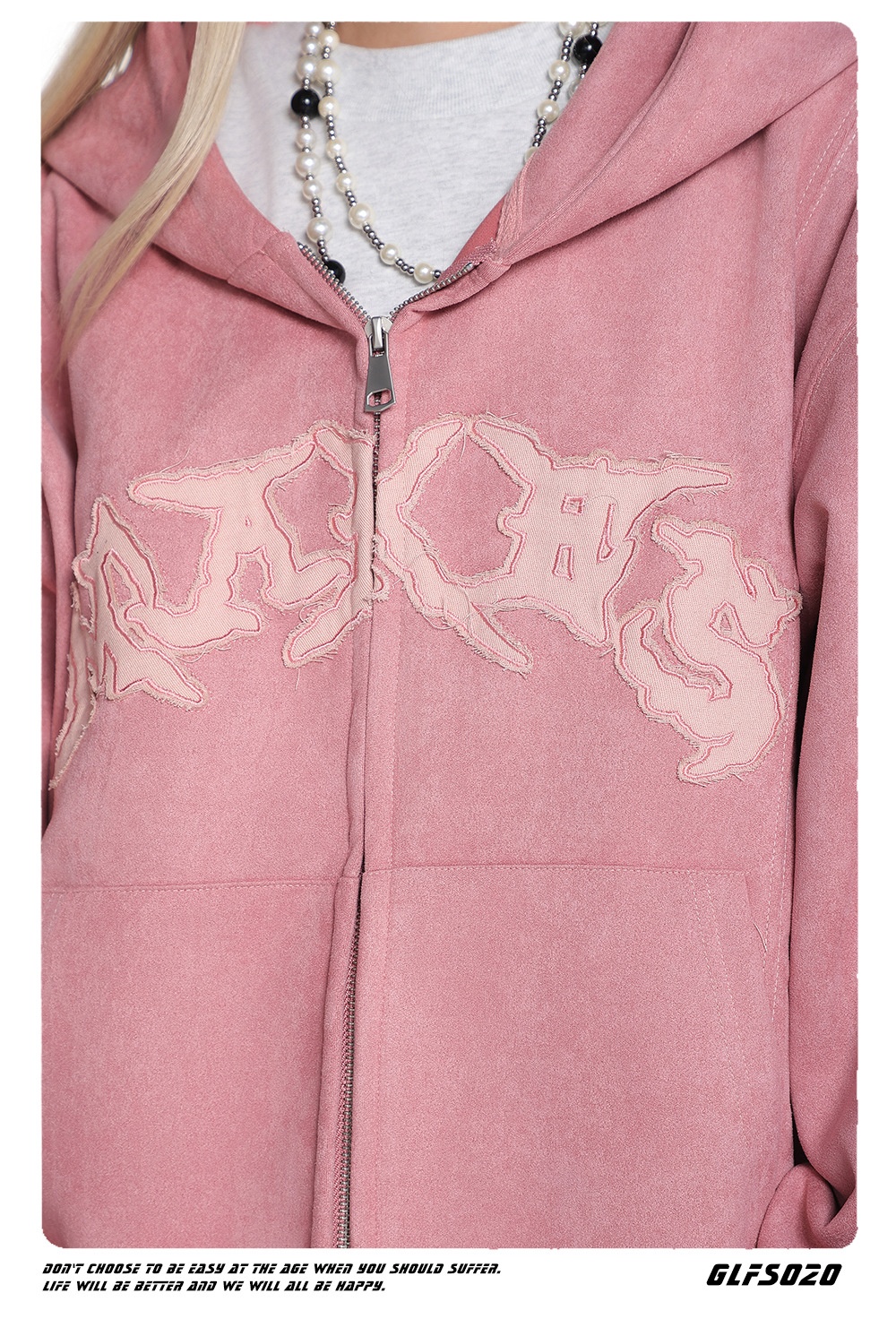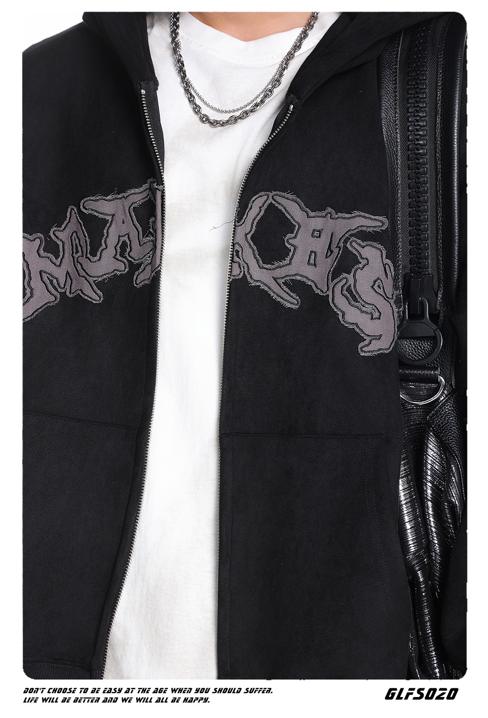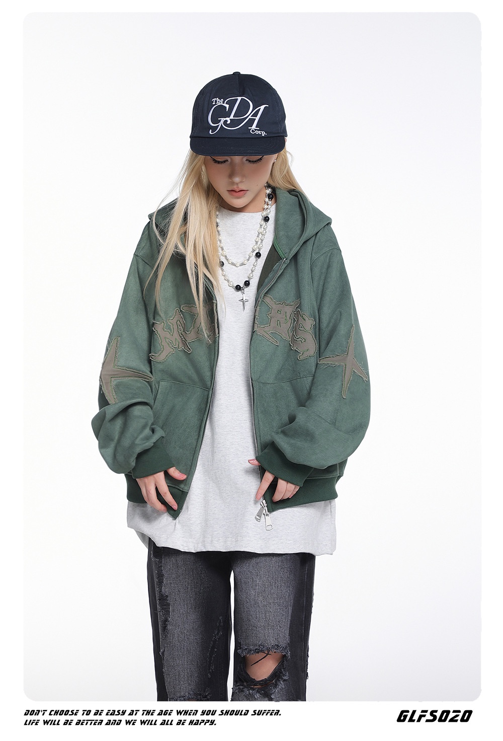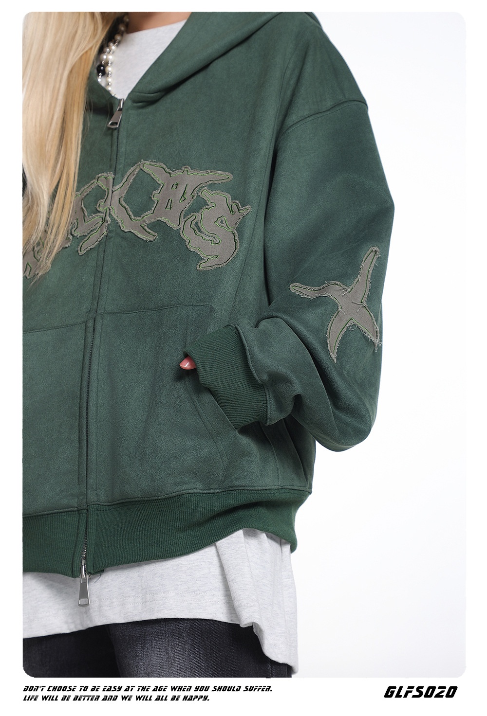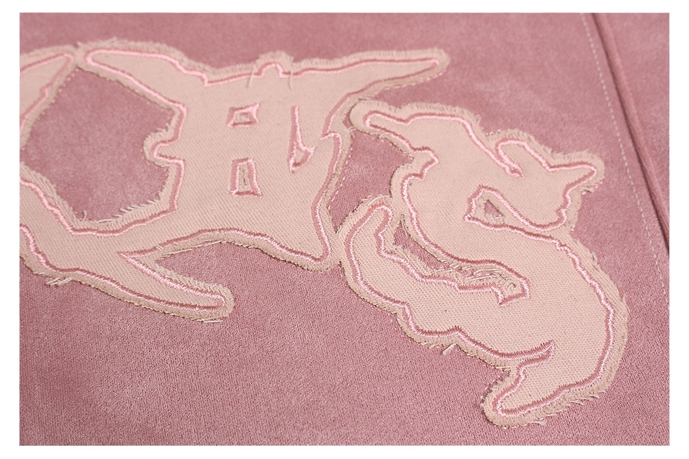 Womens Loose Cropped American-Style Letter Embroidery Patchwork Jacket