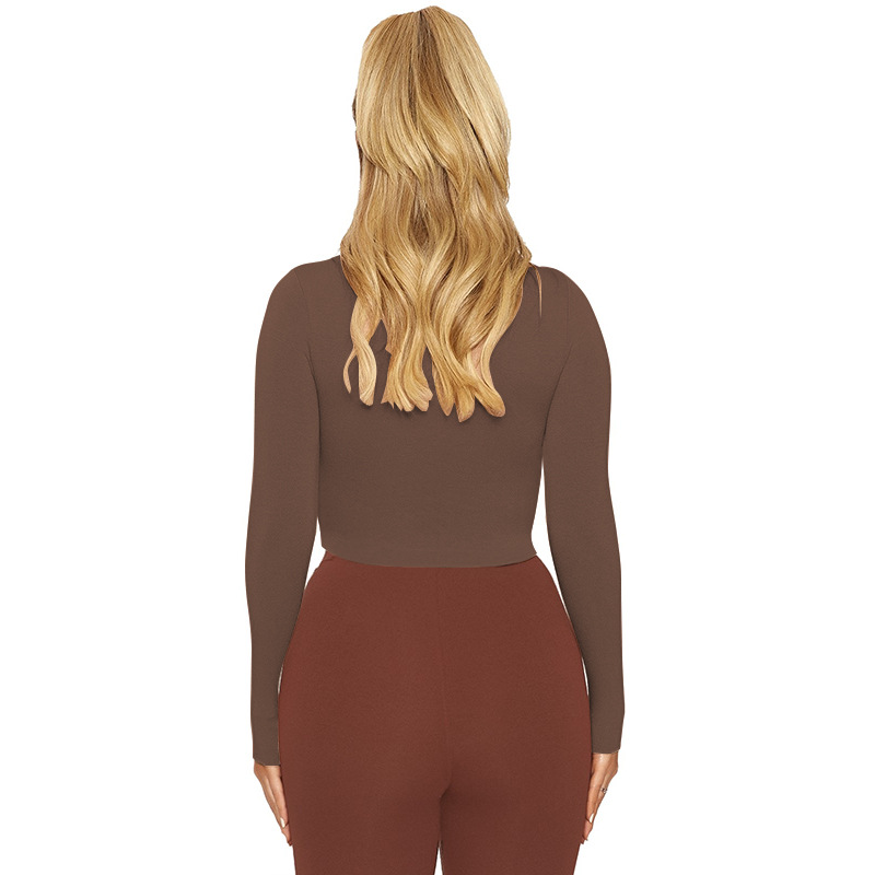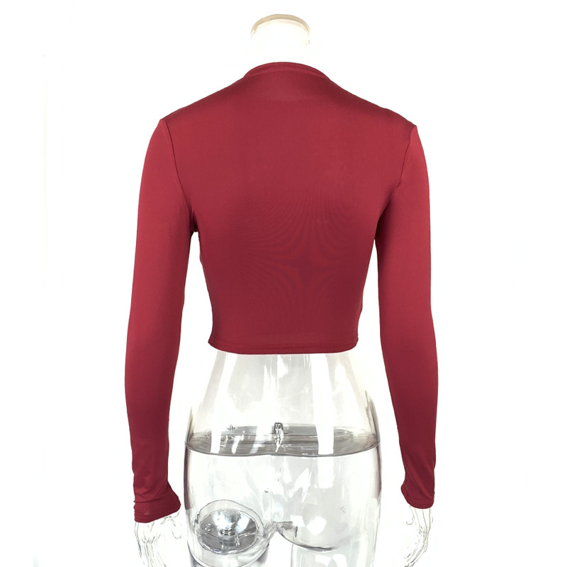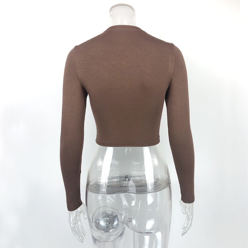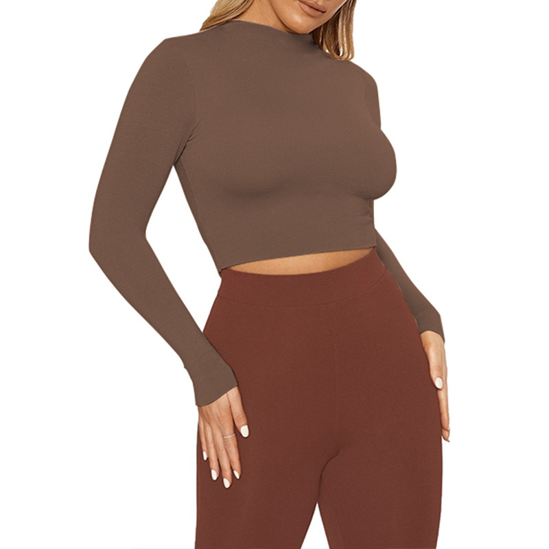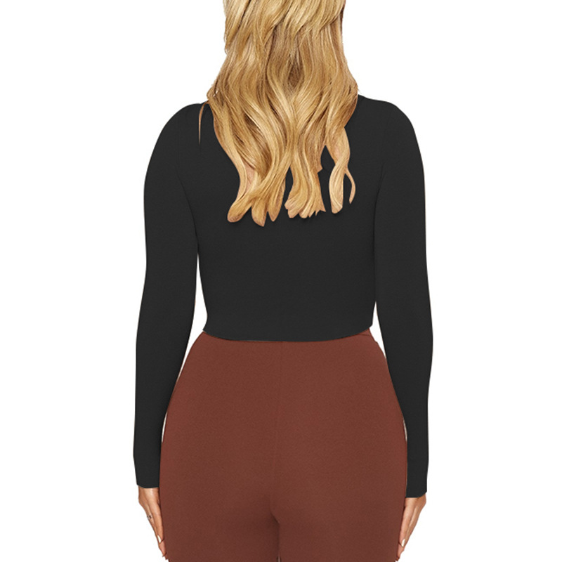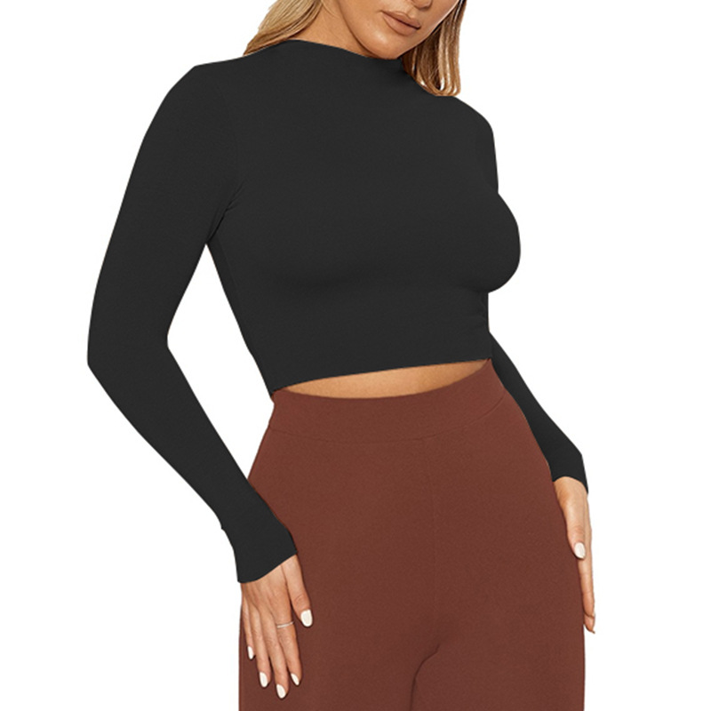 Womens Solid-Color Sexy Tight Crop Top With Long Sleeves