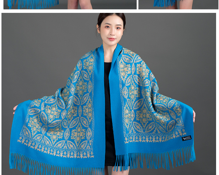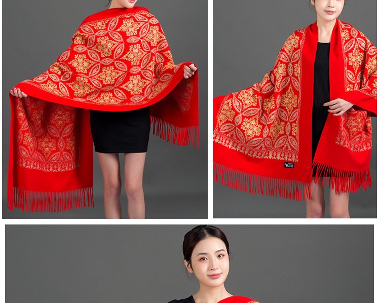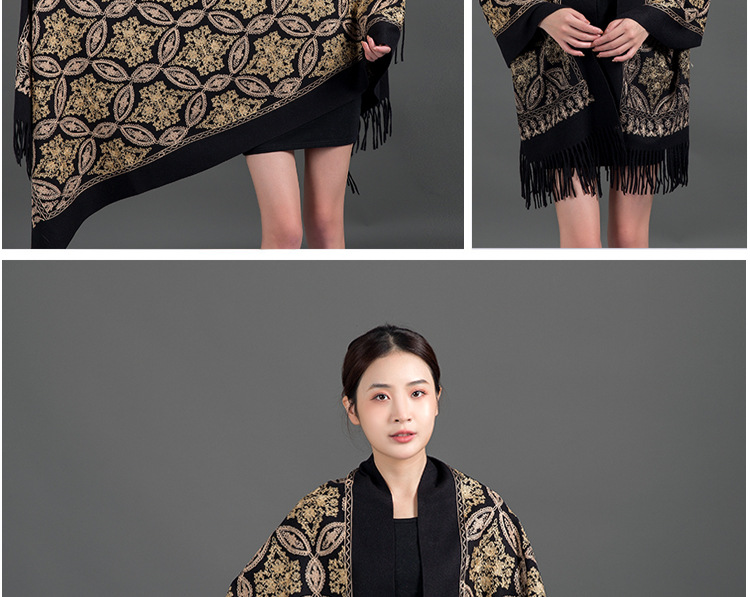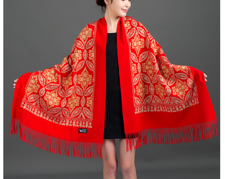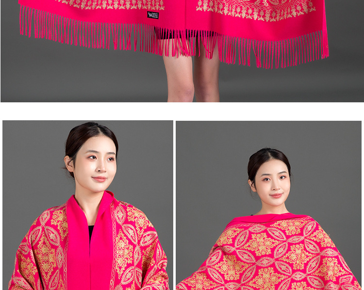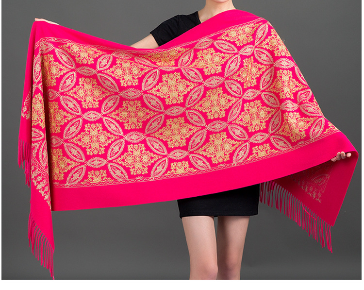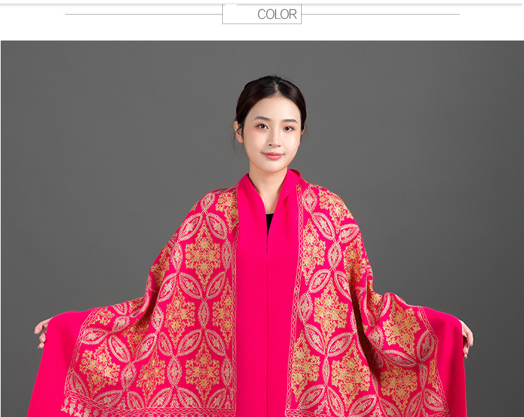 Autumn Winter Embroidered Golden Silk Lily Design In Xinjiang Cashmere