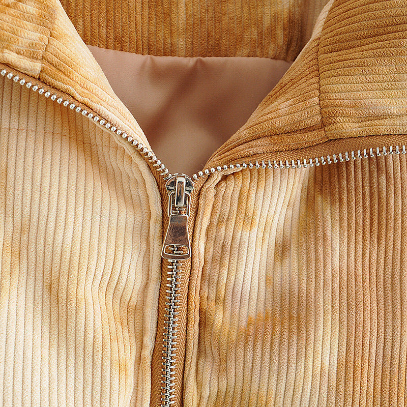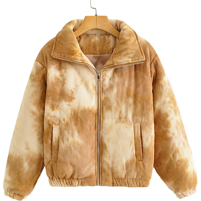 Colored Lapel Tie-dye Thick Warm Cotton Coat