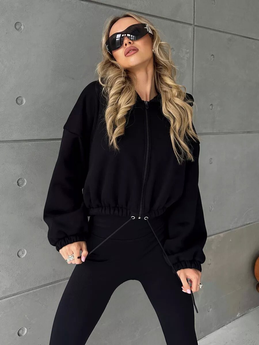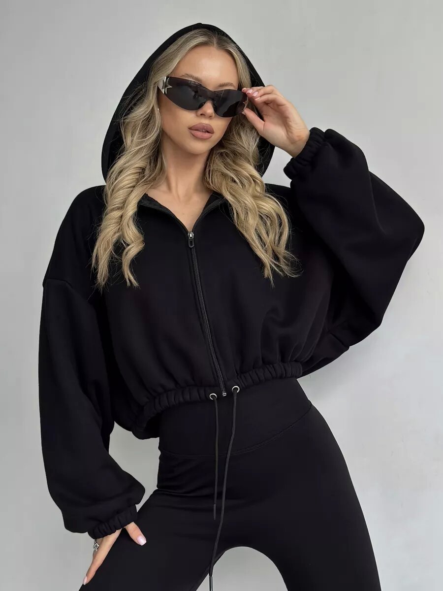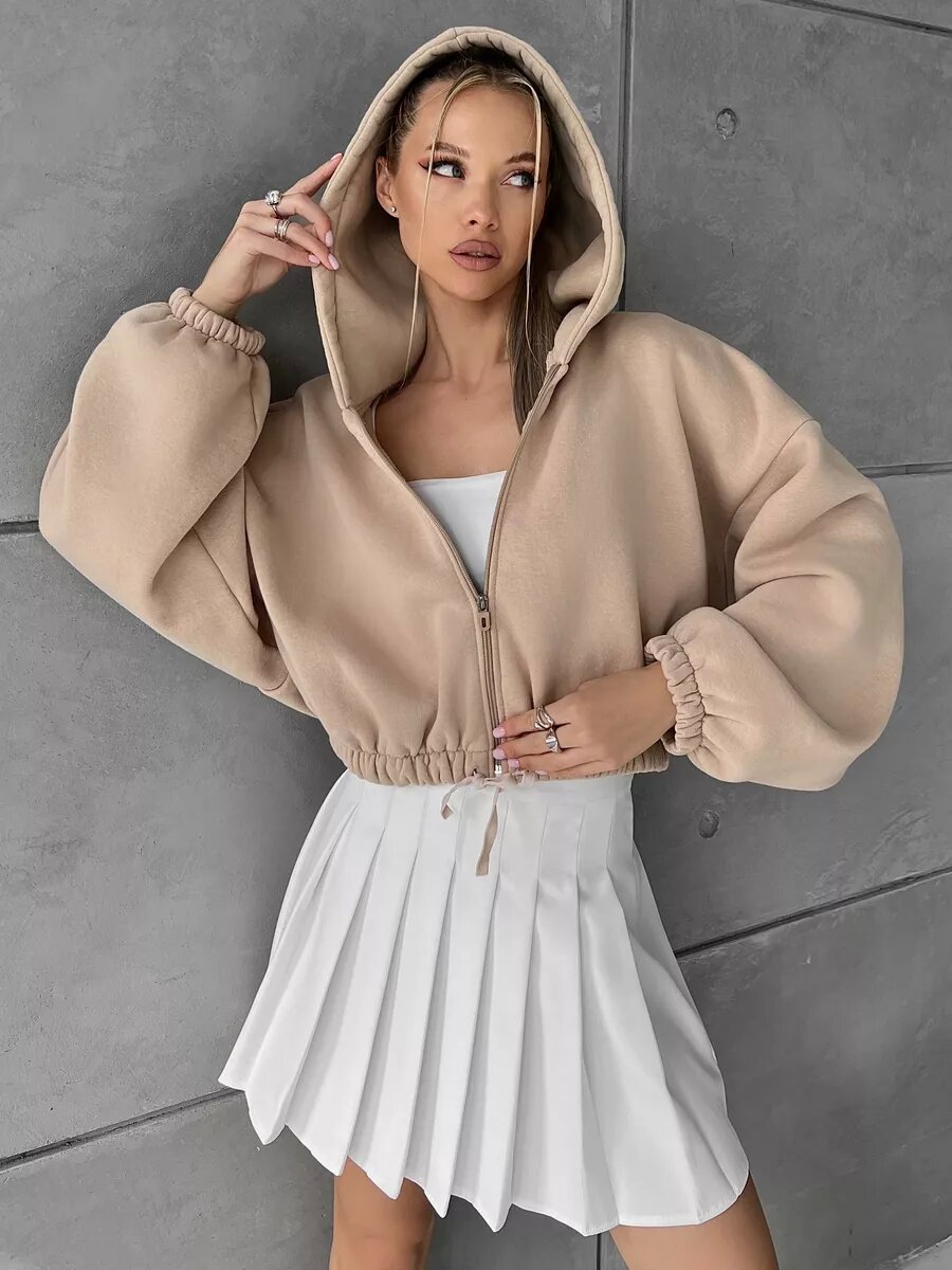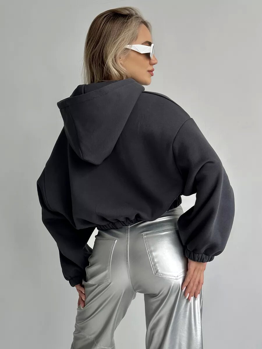 Cropped Fitted Hoodie With A Drawstring Hood And Long Sleeves Perfect For Casual Wear