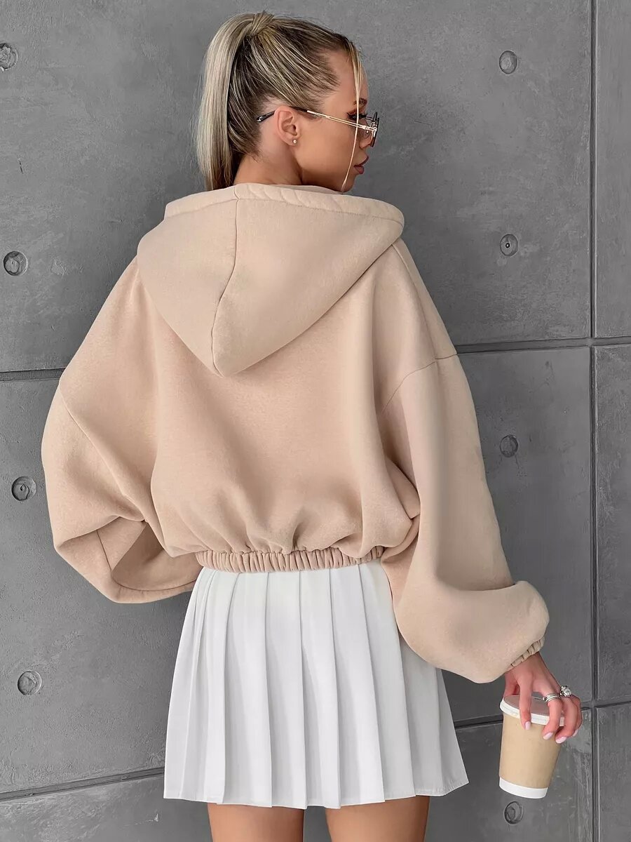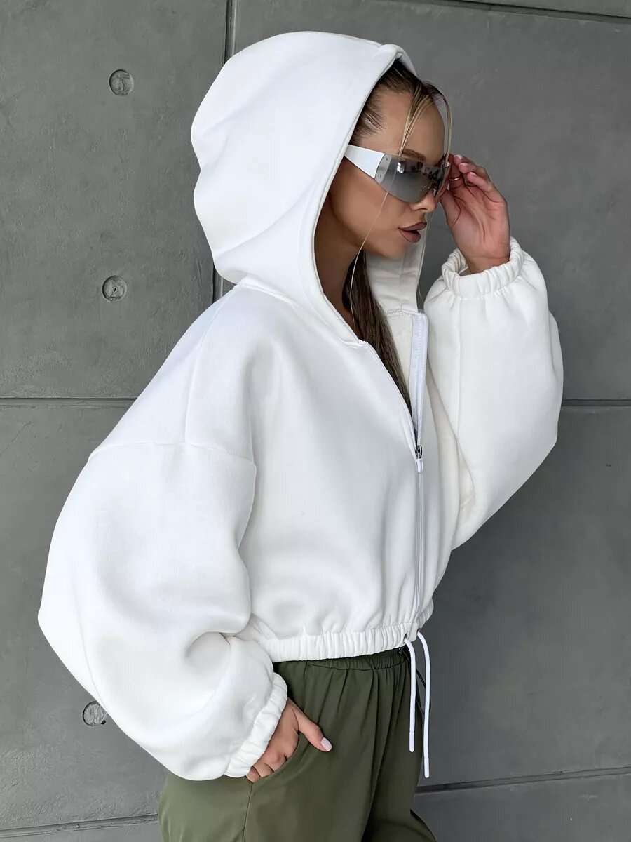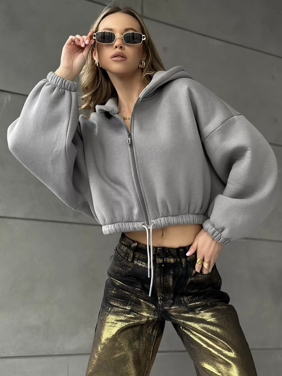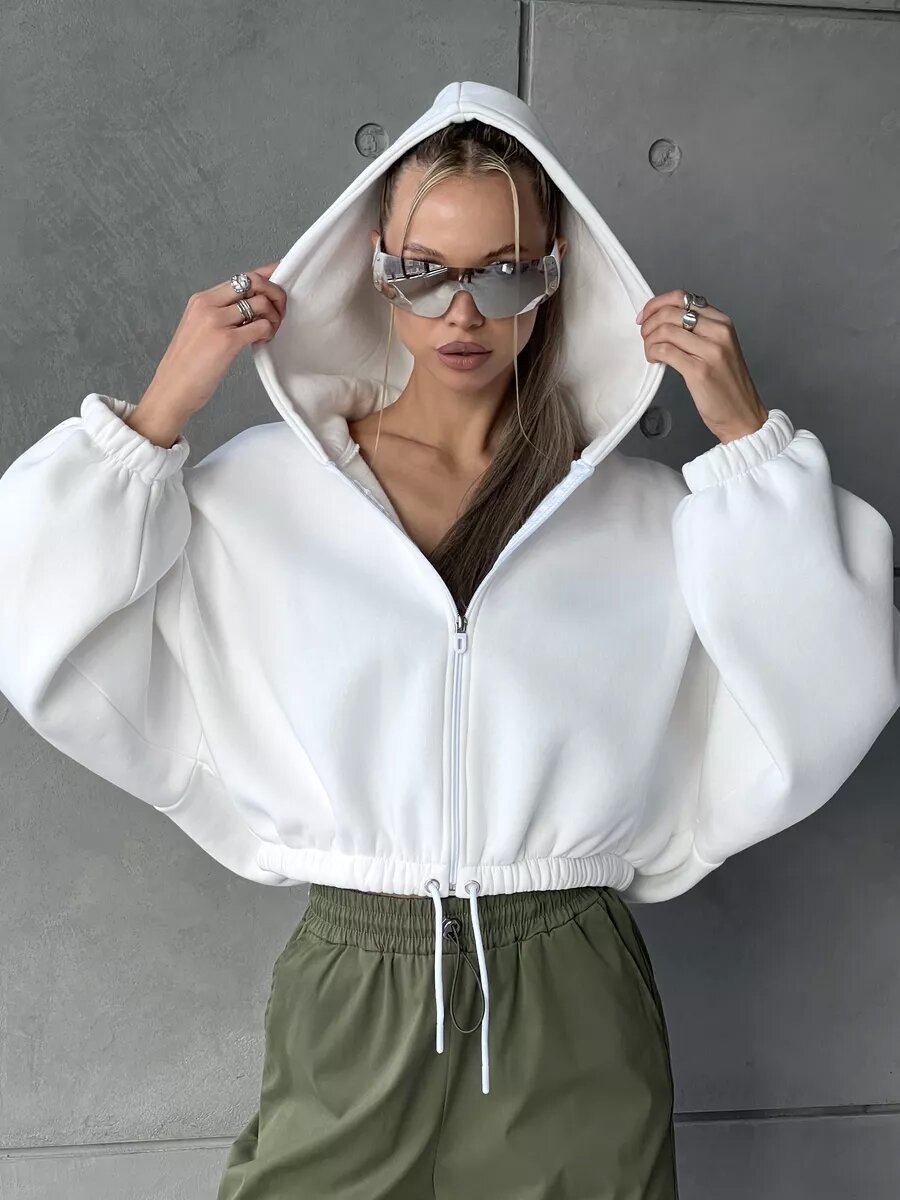 Cropped Fitted Hoodie With A Drawstring Hood And Long Sleeves Perfect For Casual Wear