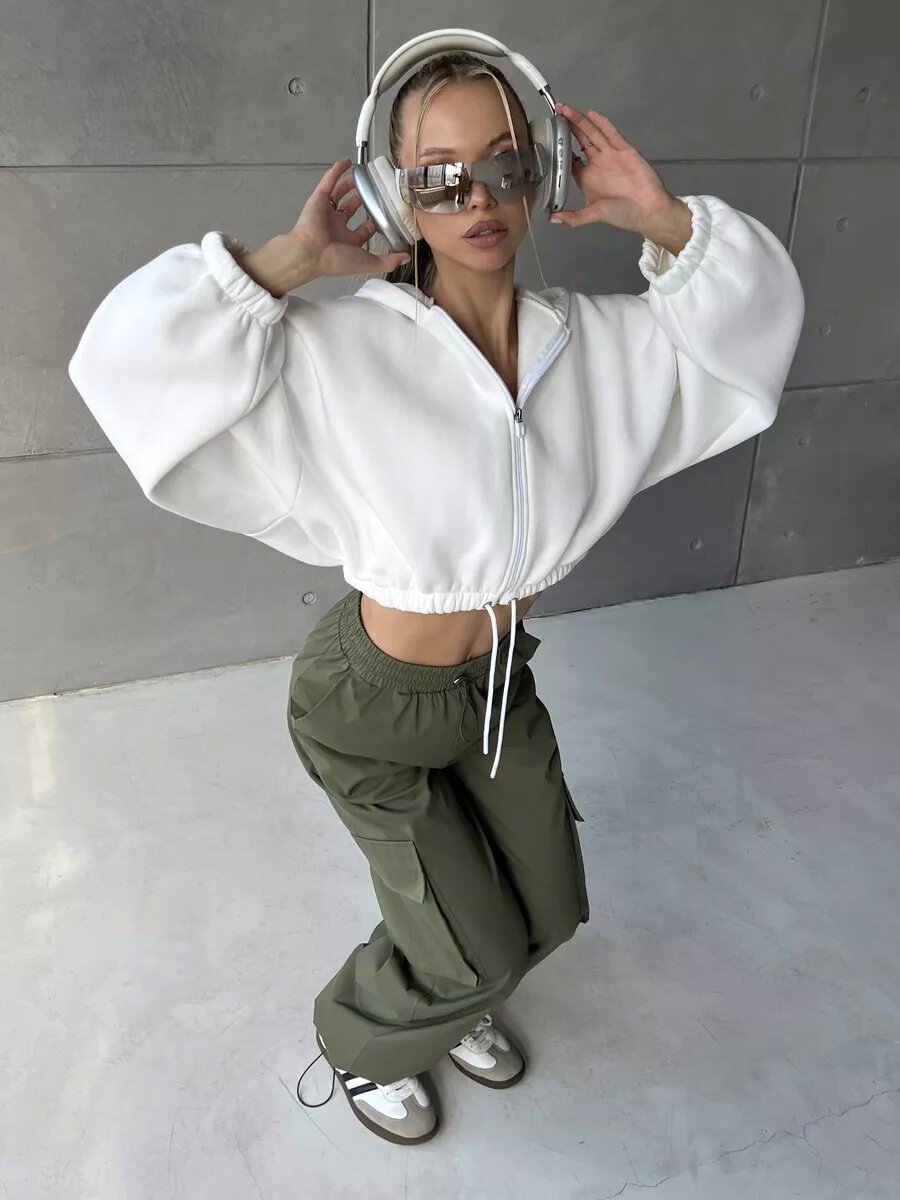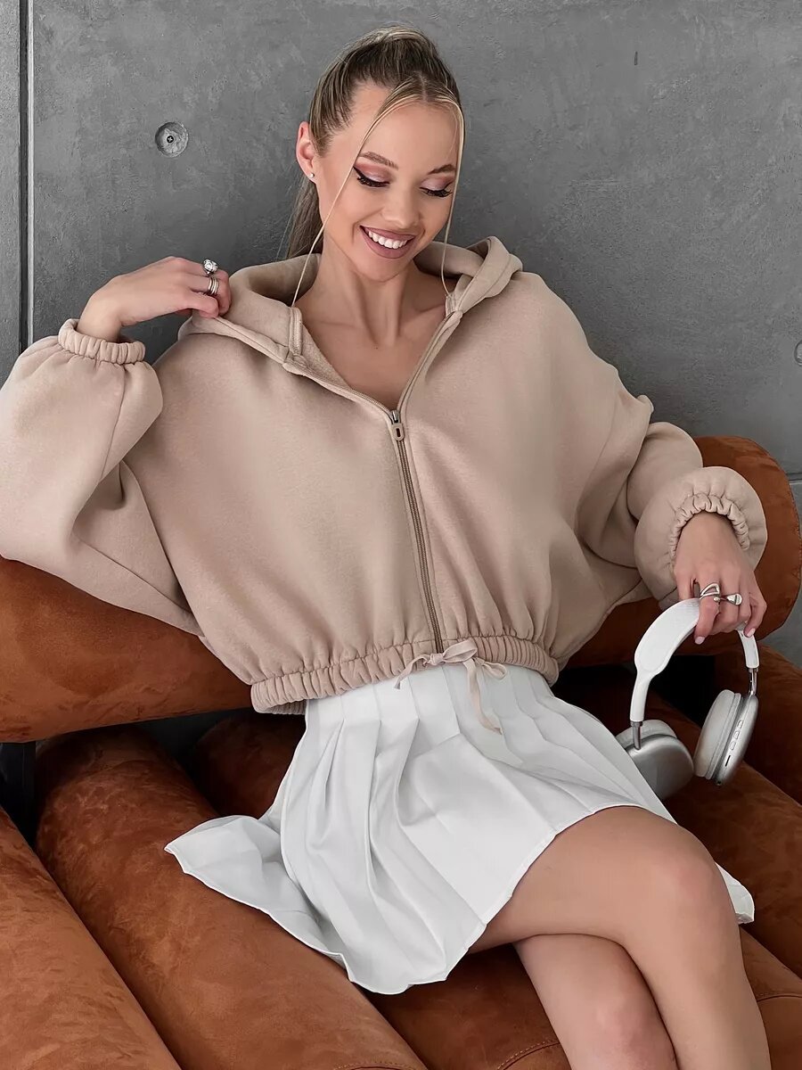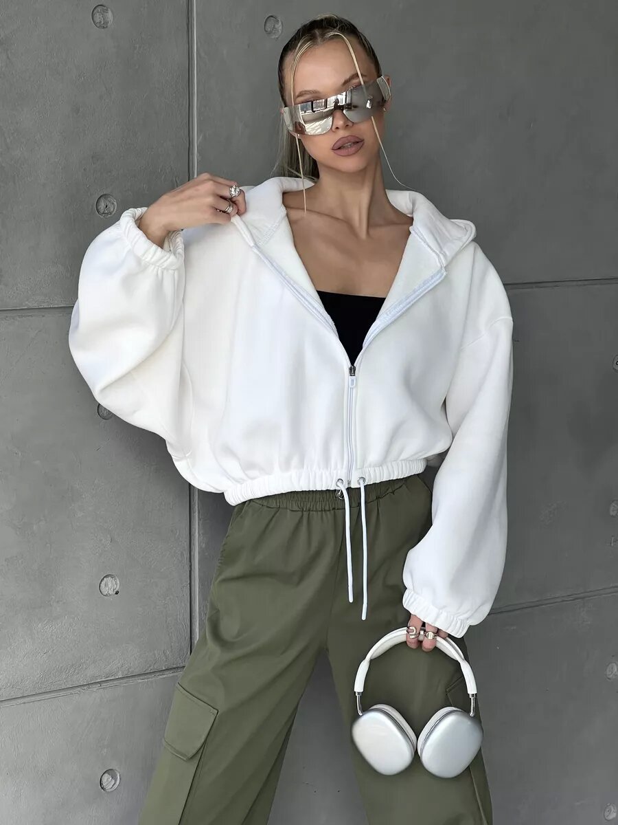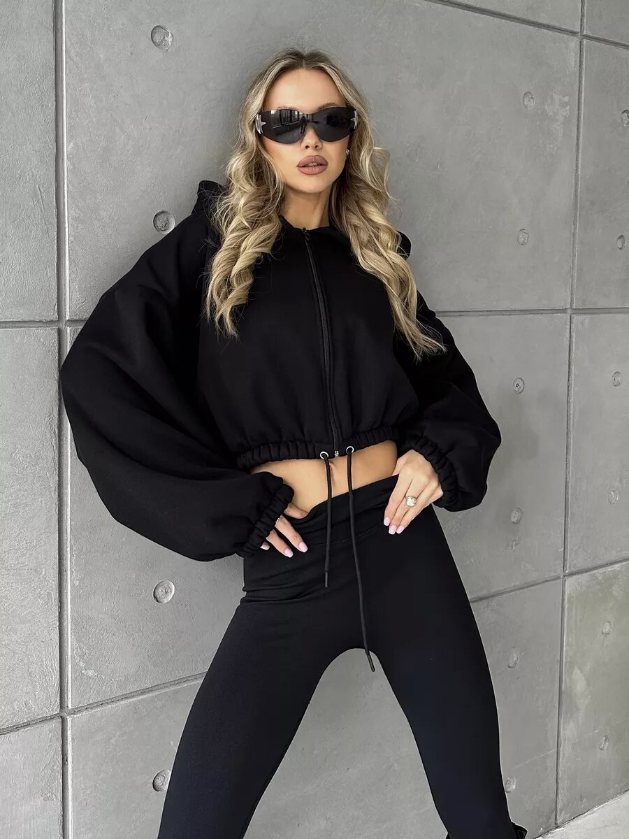 Cropped Fitted Hoodie With A Drawstring Hood And Long Sleeves Perfect For Casual Wear