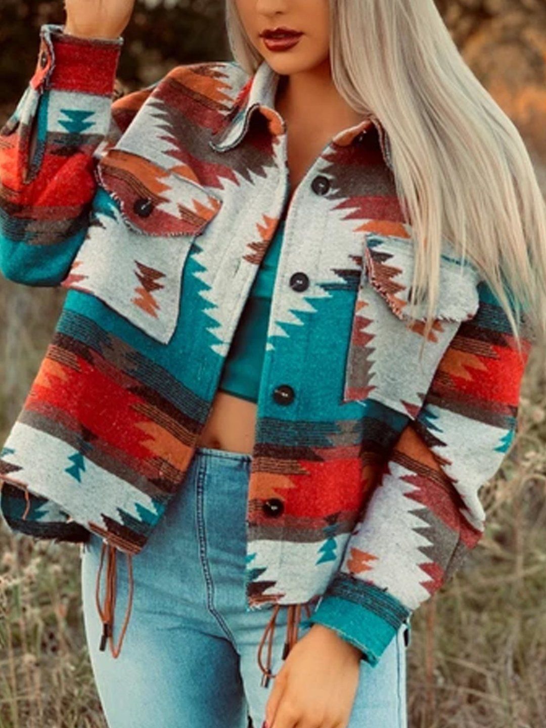 Lapel Short Woolen Print Temperament