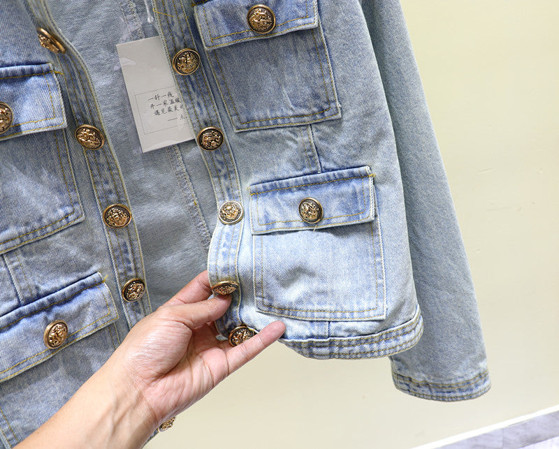 Retro Washed Blue Slim Fit Short Denim Jacket
