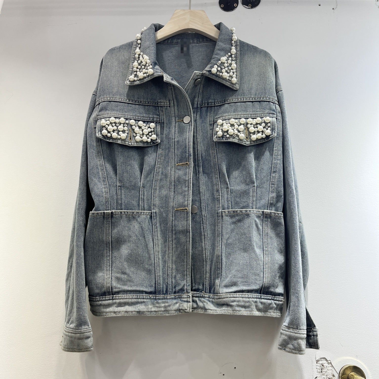 Vintage Denim Jacket Women's Washed Waist Heavy Industry Beads