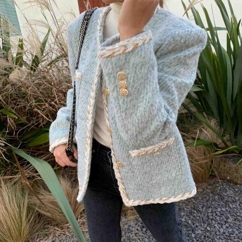 Women's Autumn Retro Crew Neck Single-breasted Loose Wool Short Coat