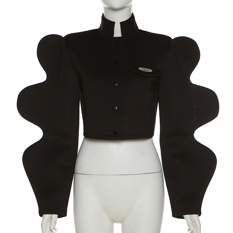 Women's Fashion Stand Collar Single Breasted Creative Lantern Sleeve Jacket