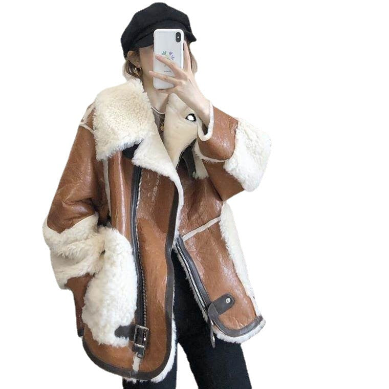 Women's Retro Fur All-in-one Motorcycle Jacket