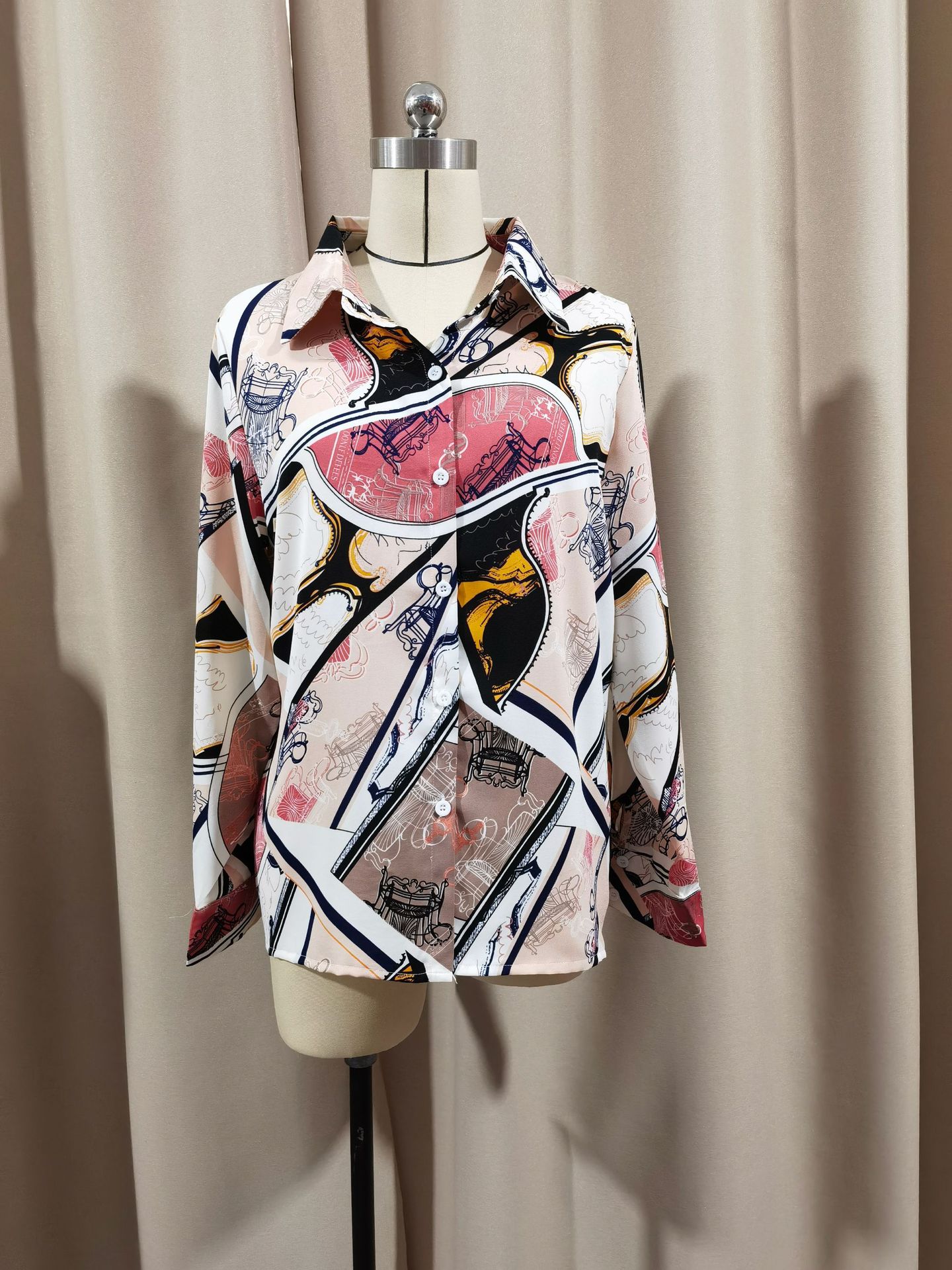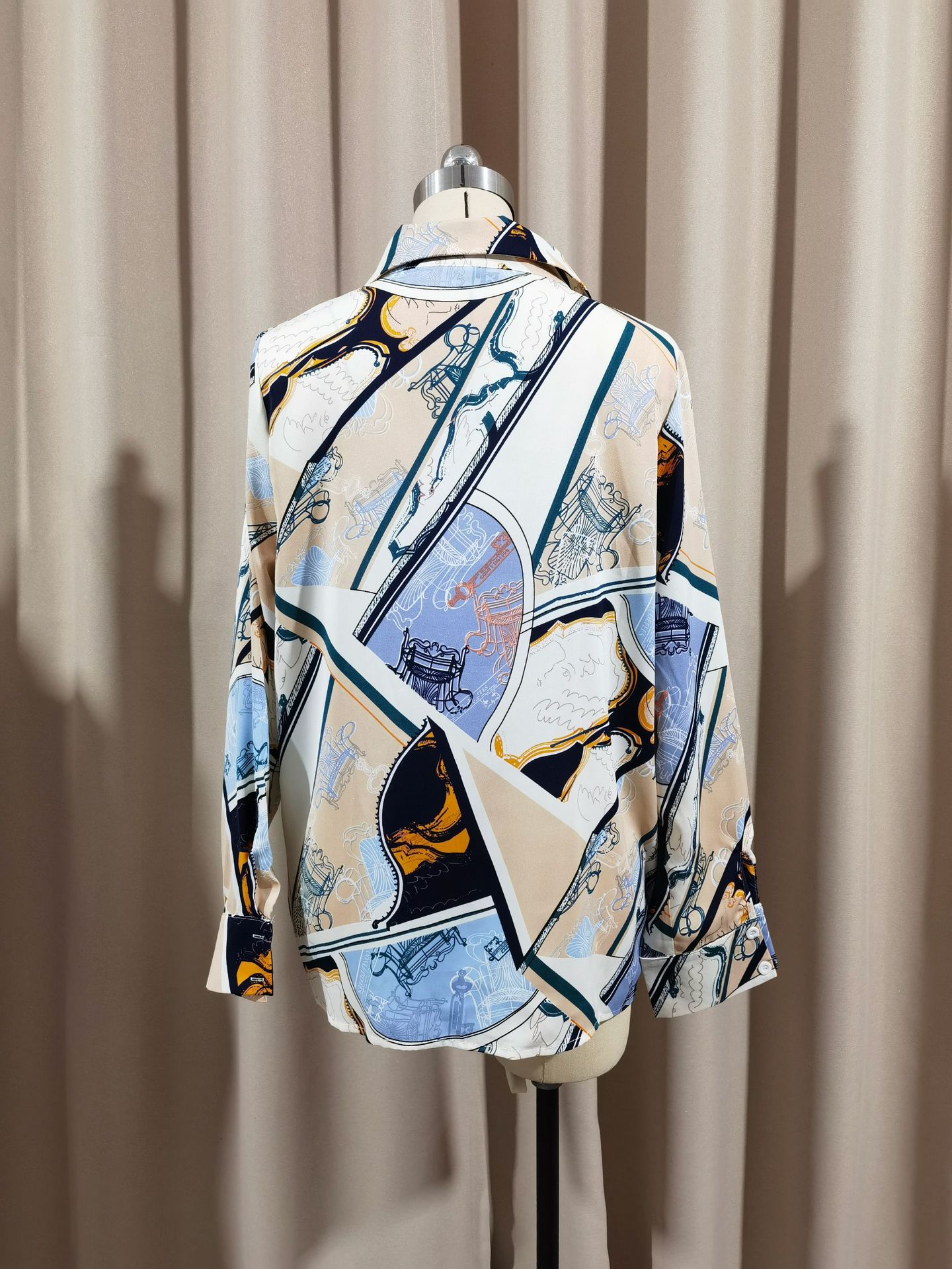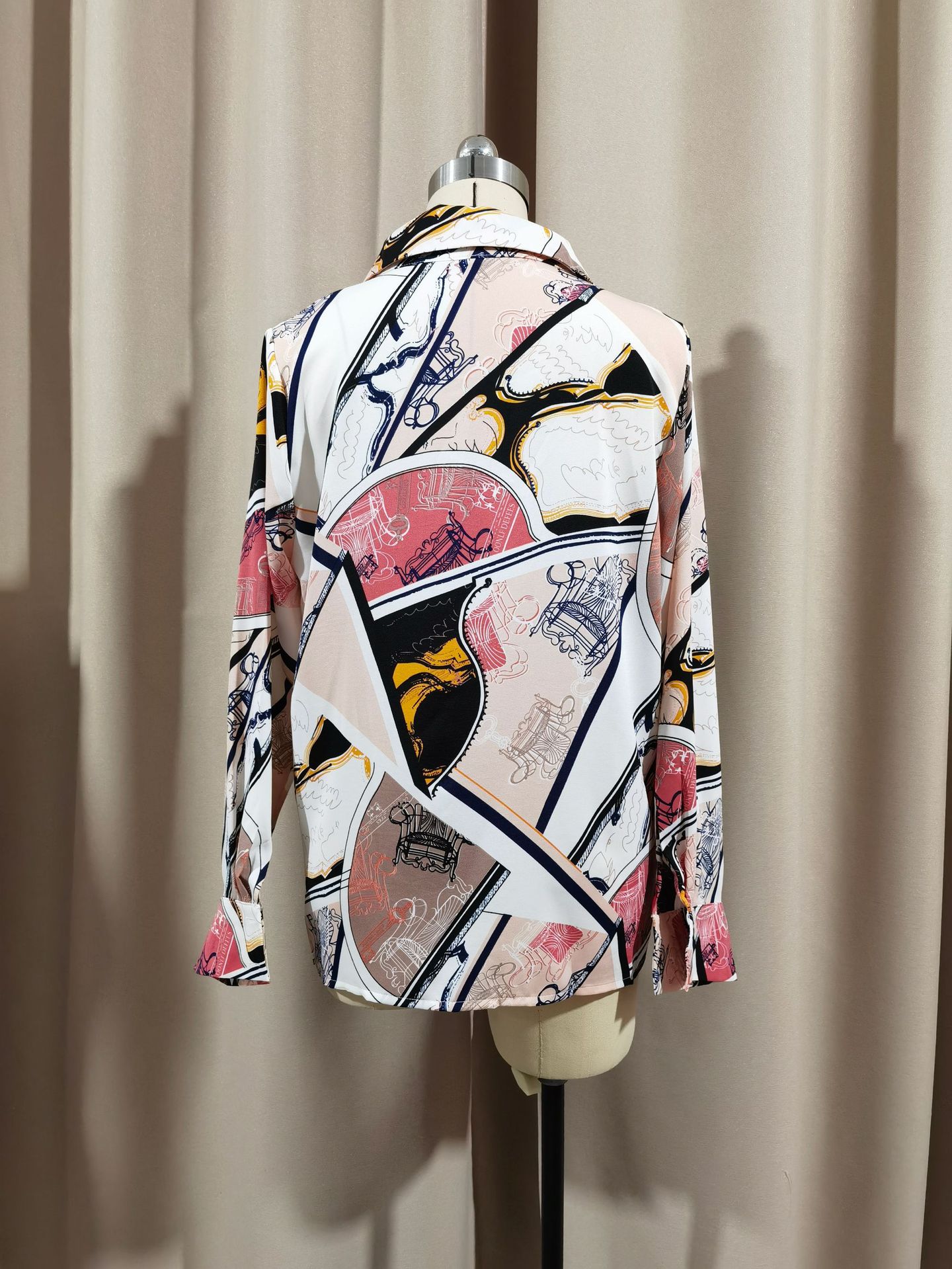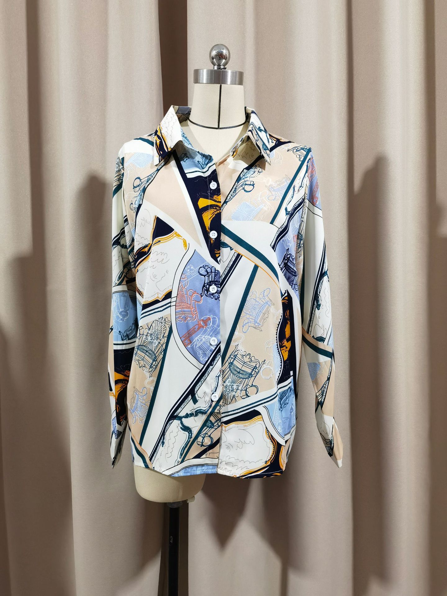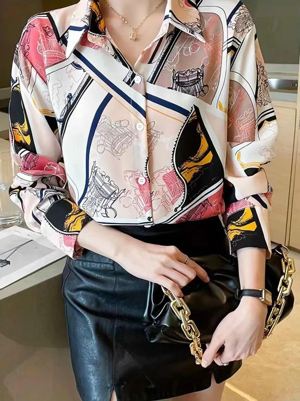 Fashionable Printed Long-sleeved Chiffon Shirt For Women