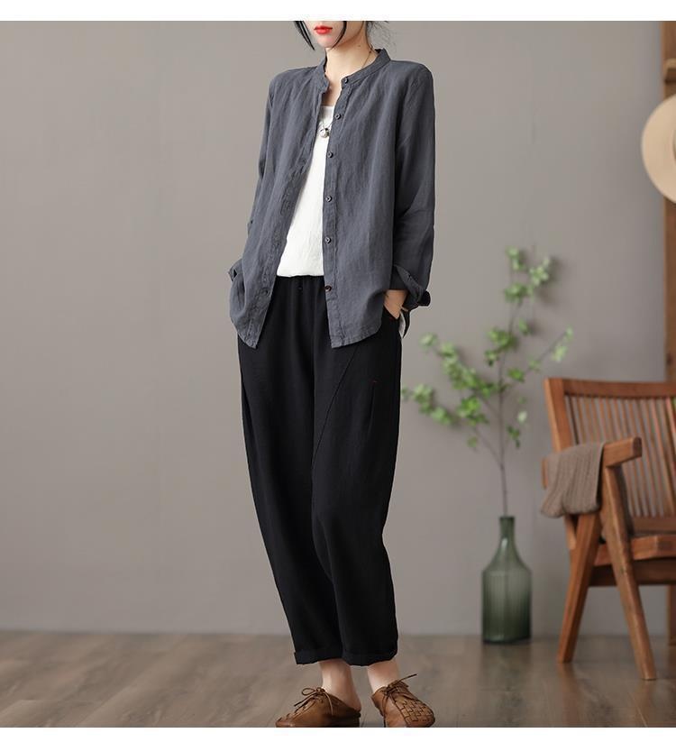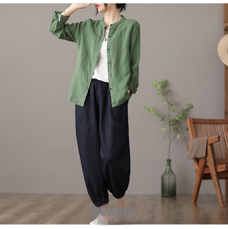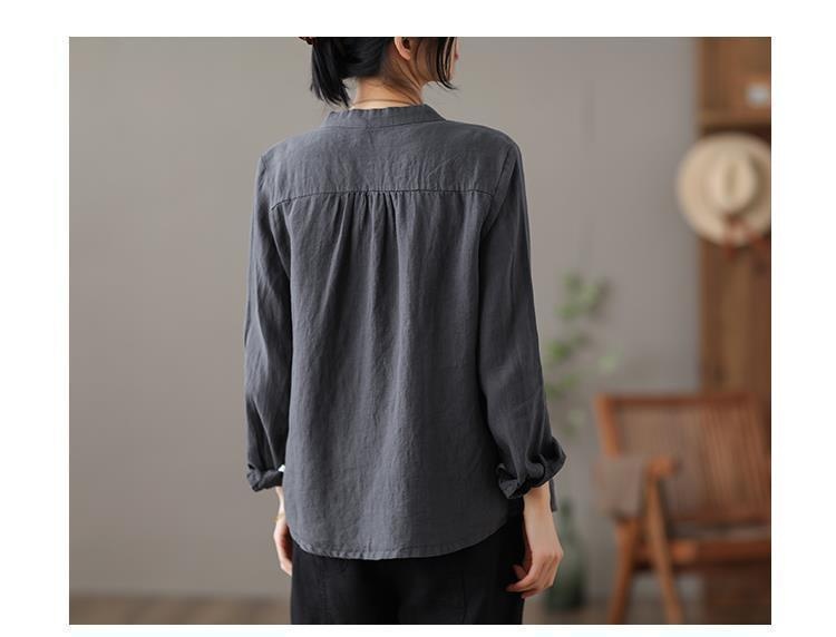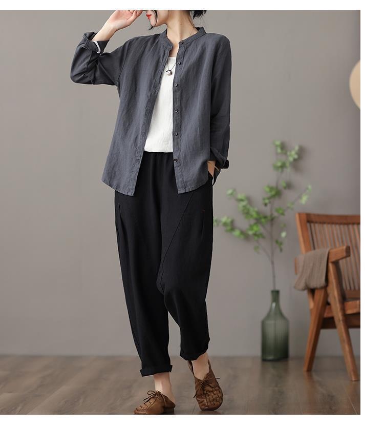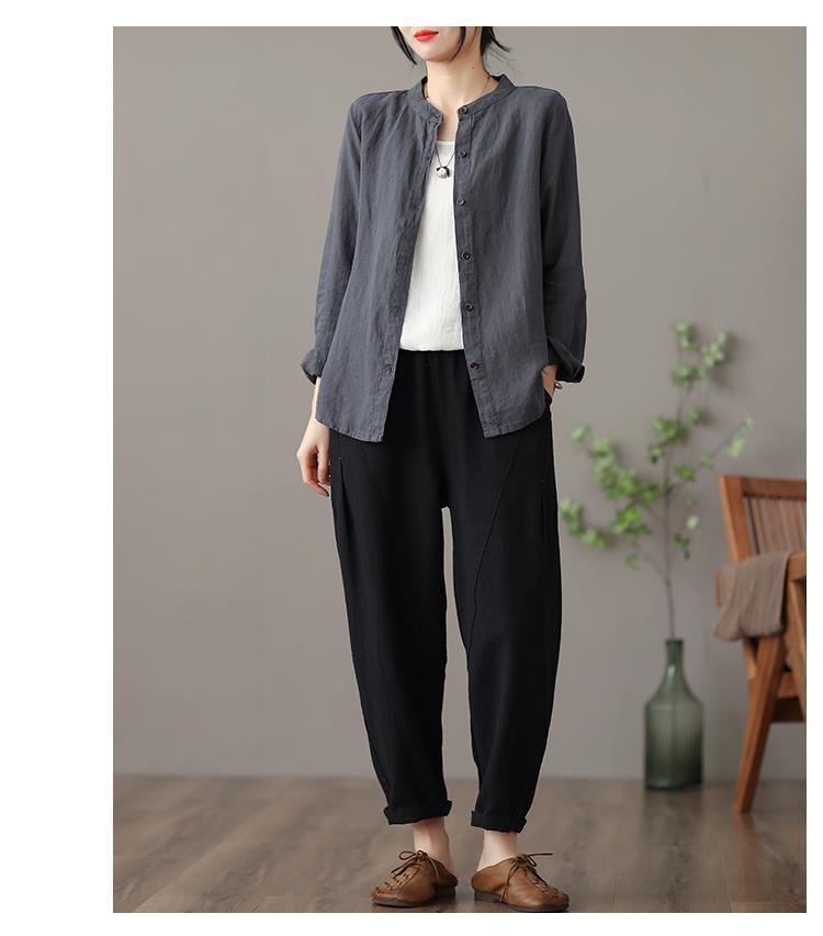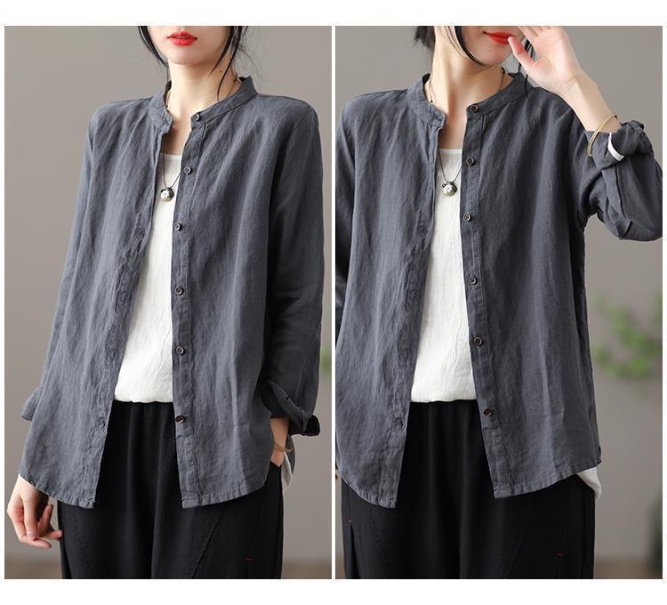 Long Sleeve Shirt Loose Slim Fit Slimming Pure Color All-matching