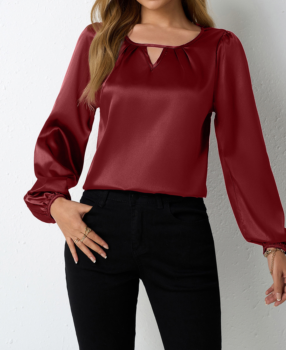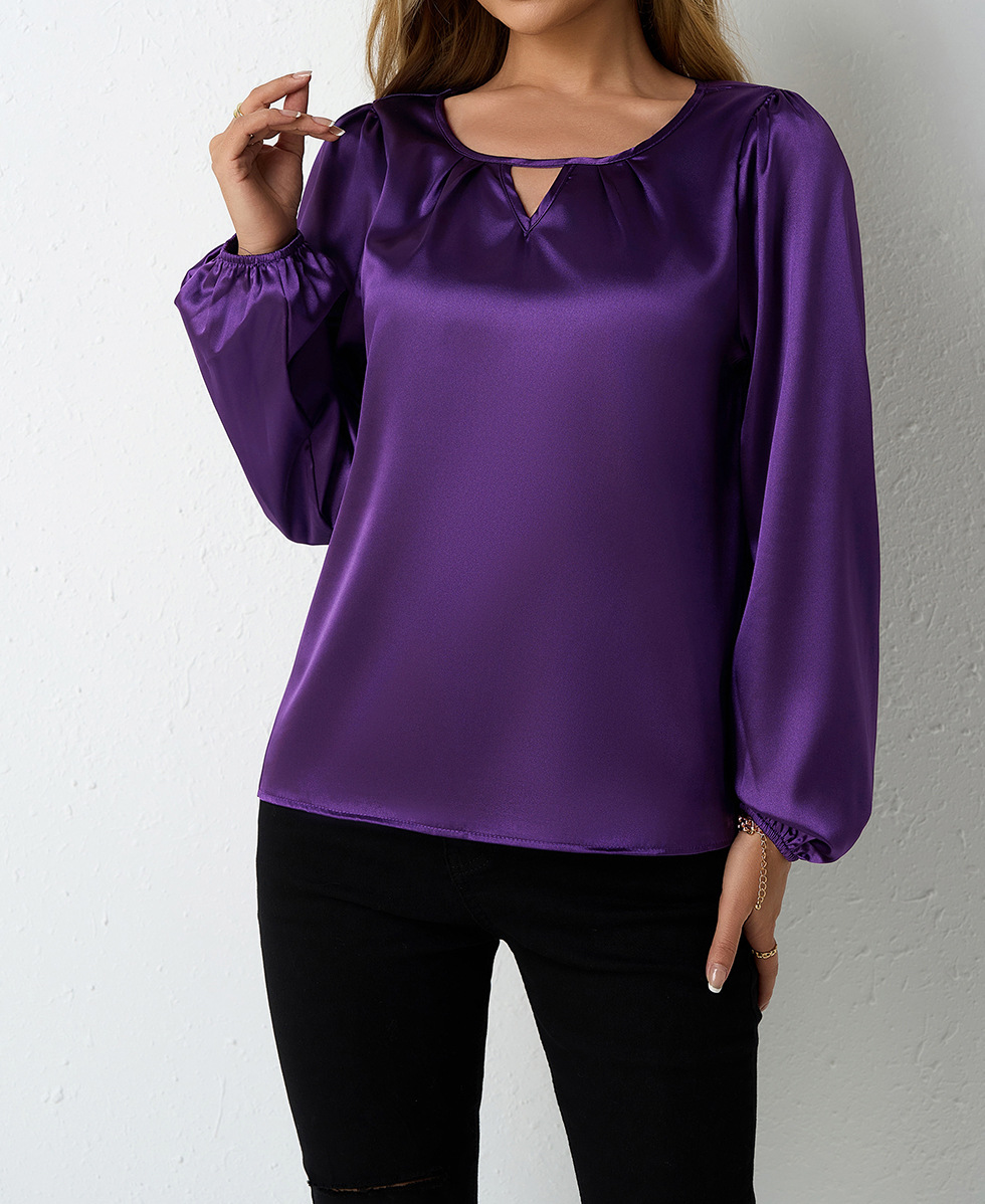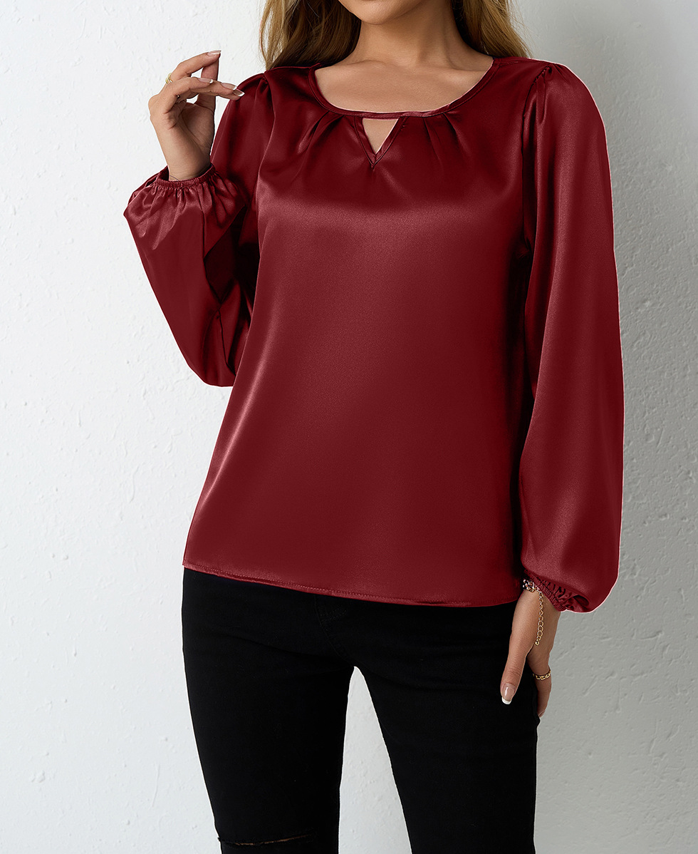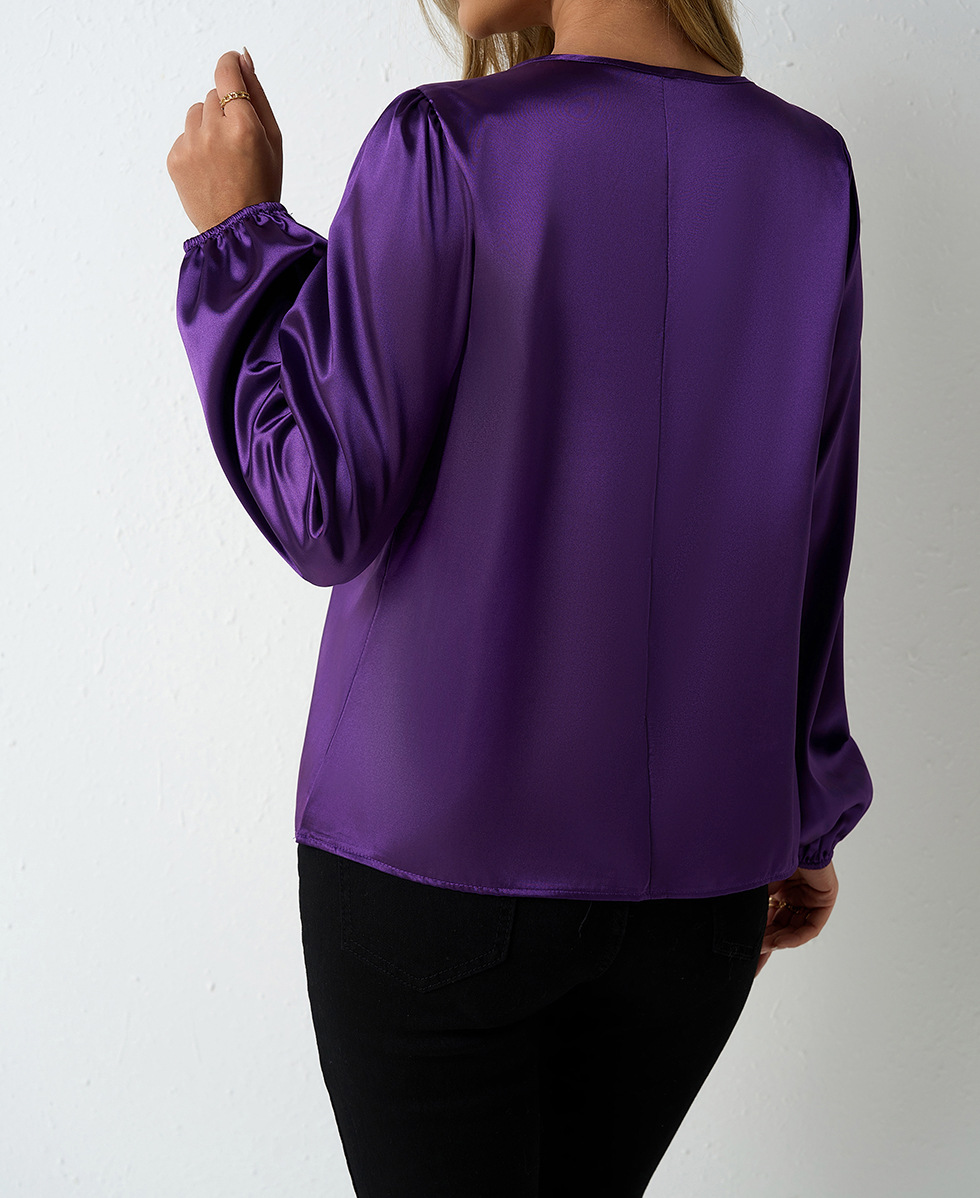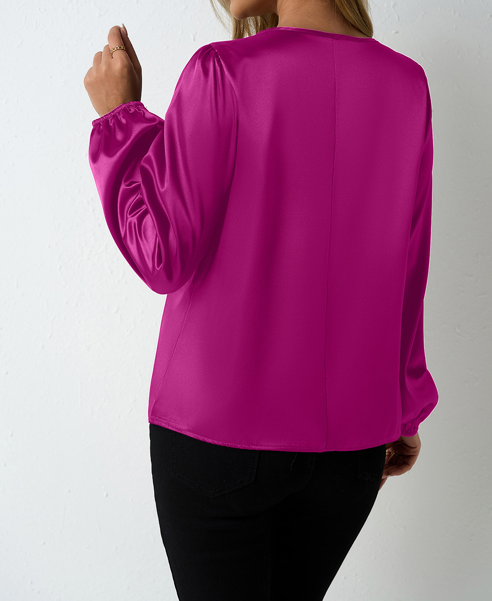 Women's Silk-like Pleated Long-sleeved Satin Top