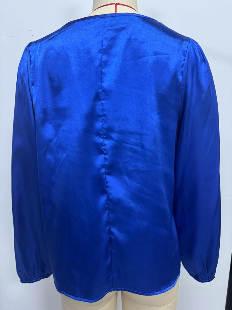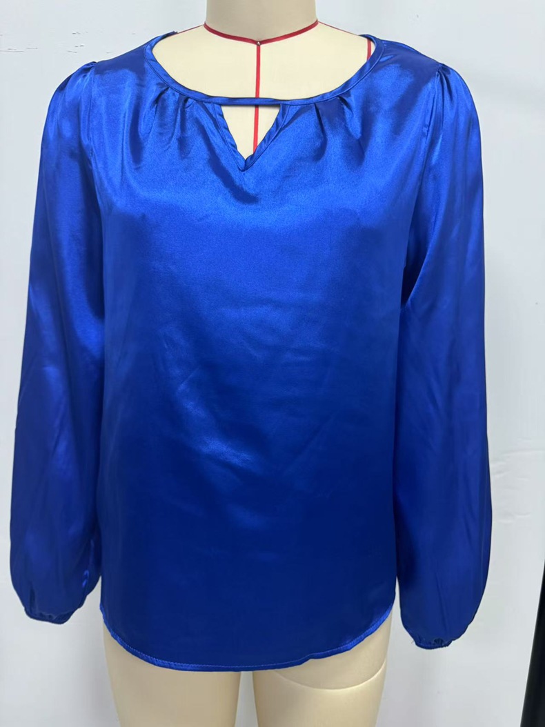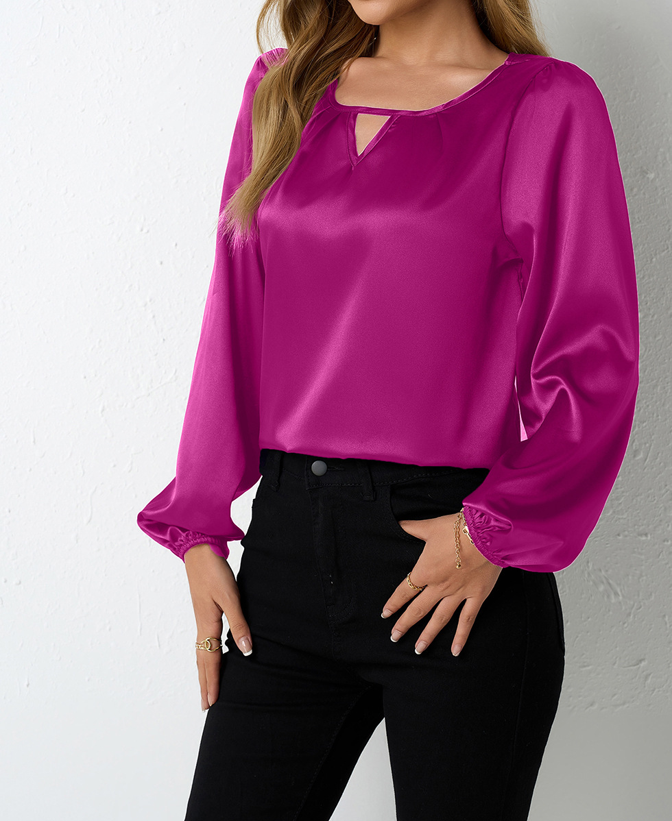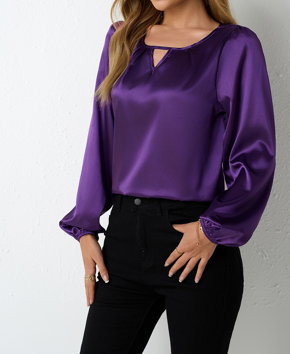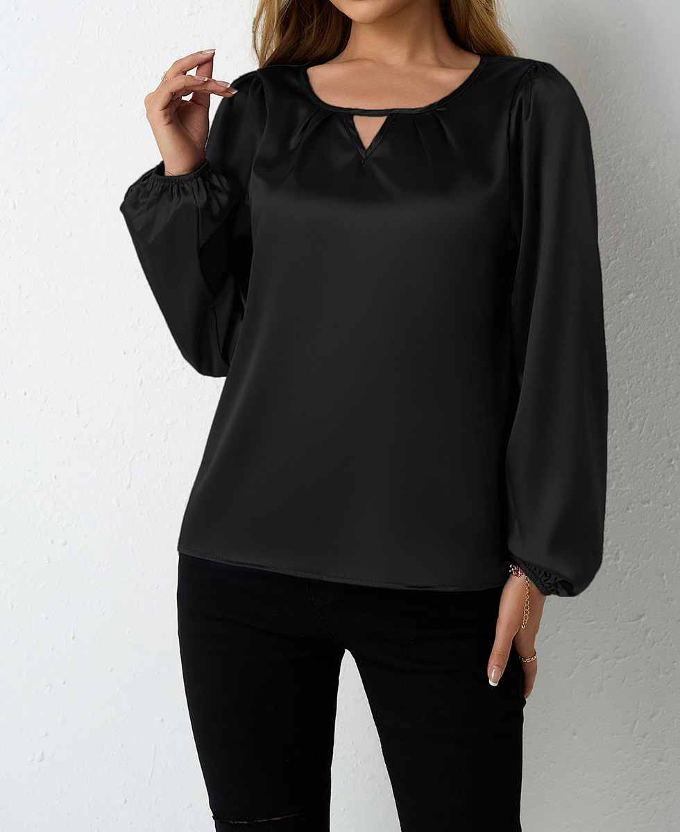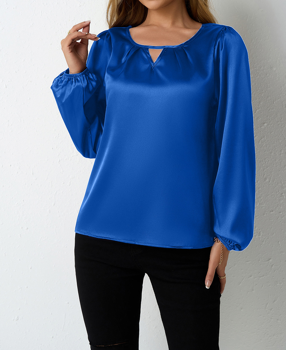 Women's Silk-like Pleated Long-sleeved Satin Top