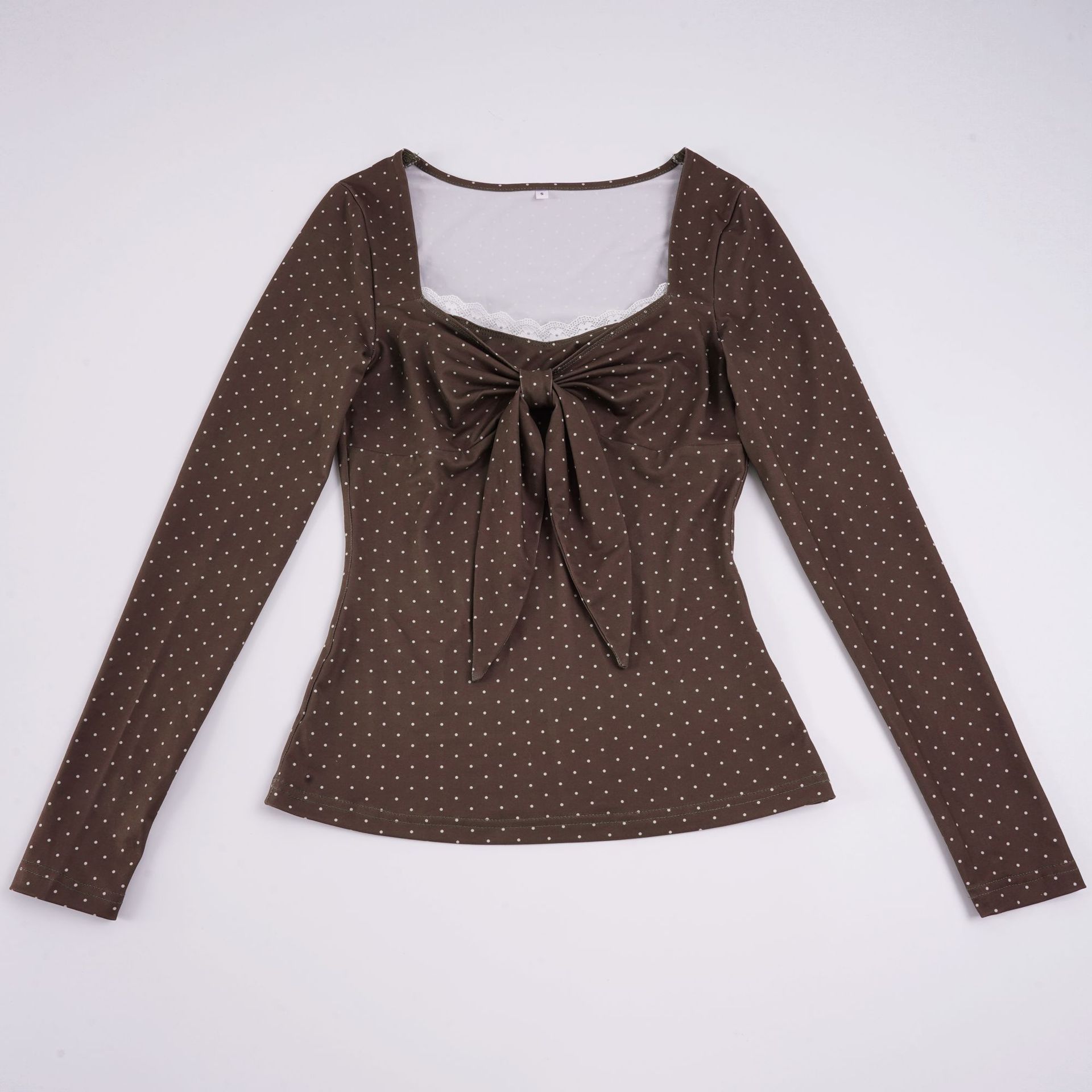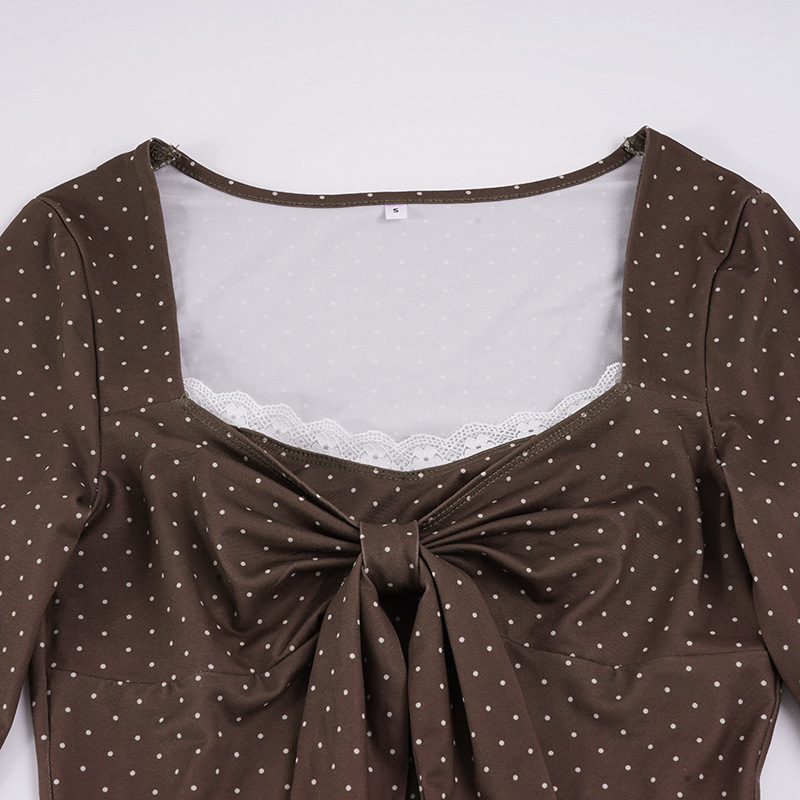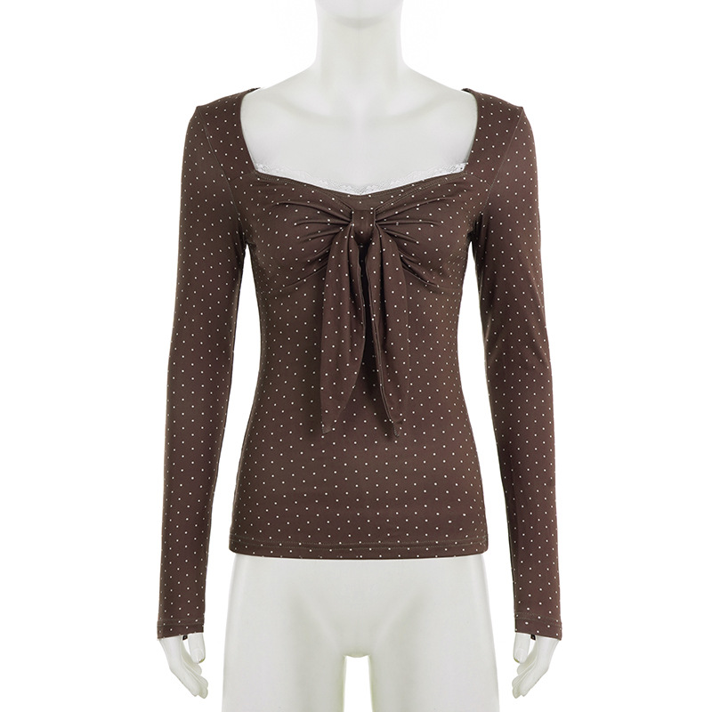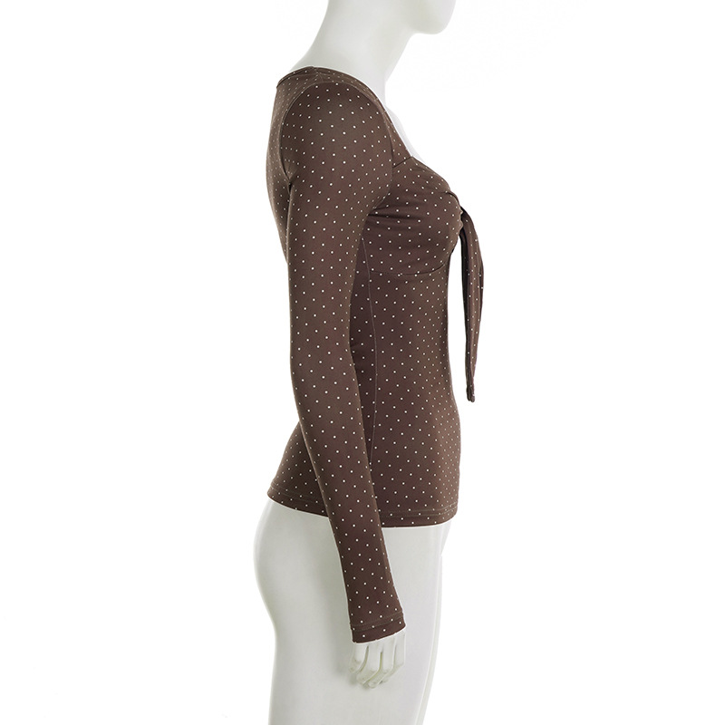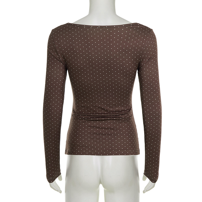 Cute Polka-Dot Retro Elegant Slim-Fit Base Top For Women