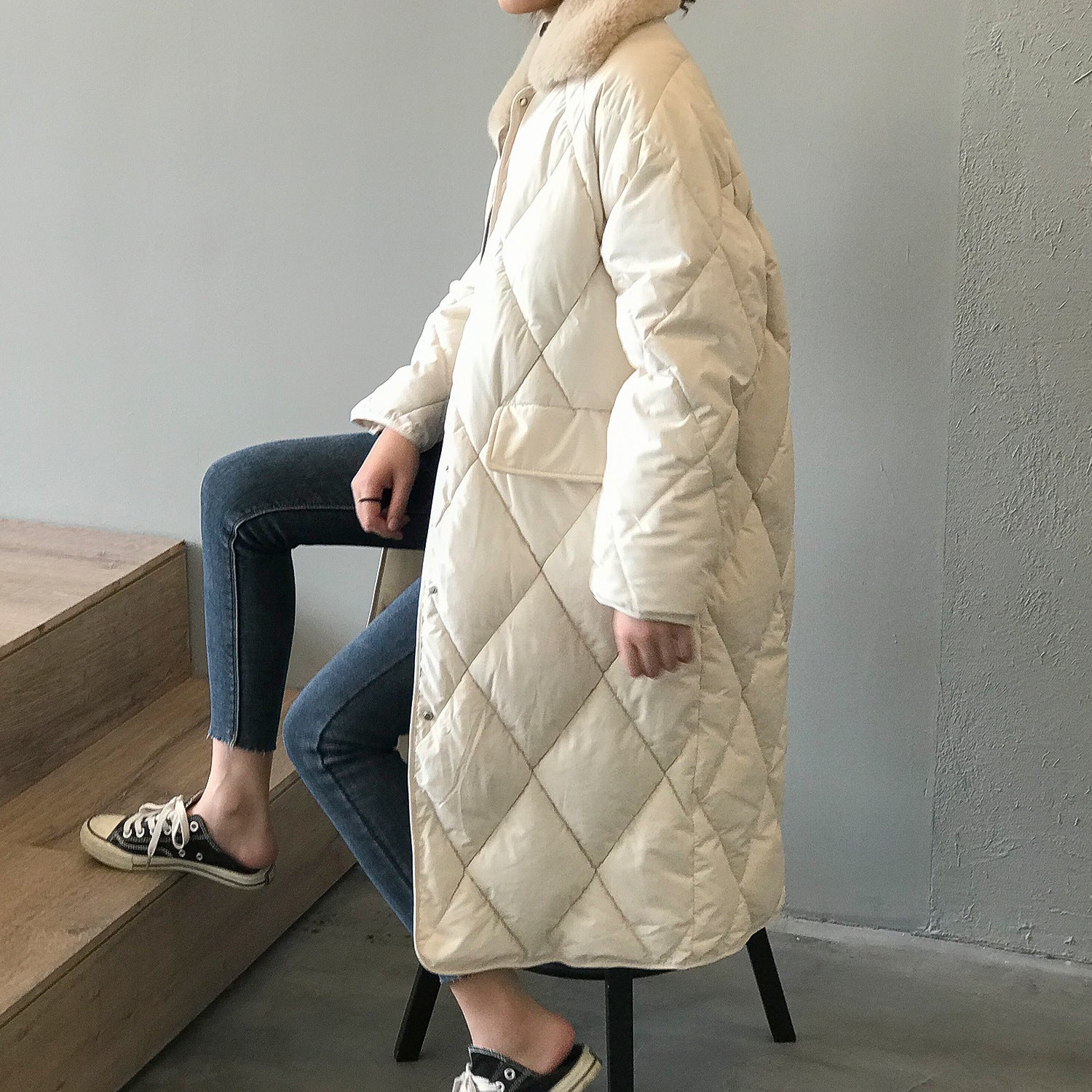 Mid-length Women's Fur Collar Rhombus Quilted Jacket