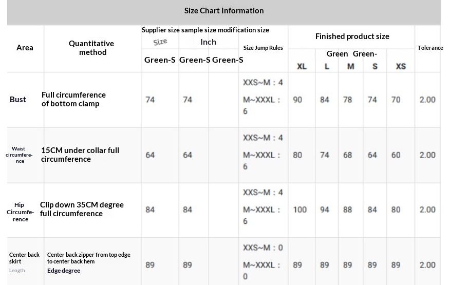 Size Information:
