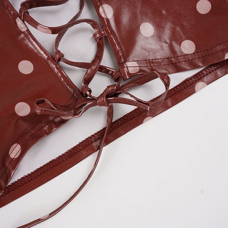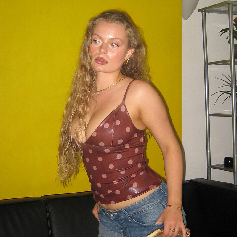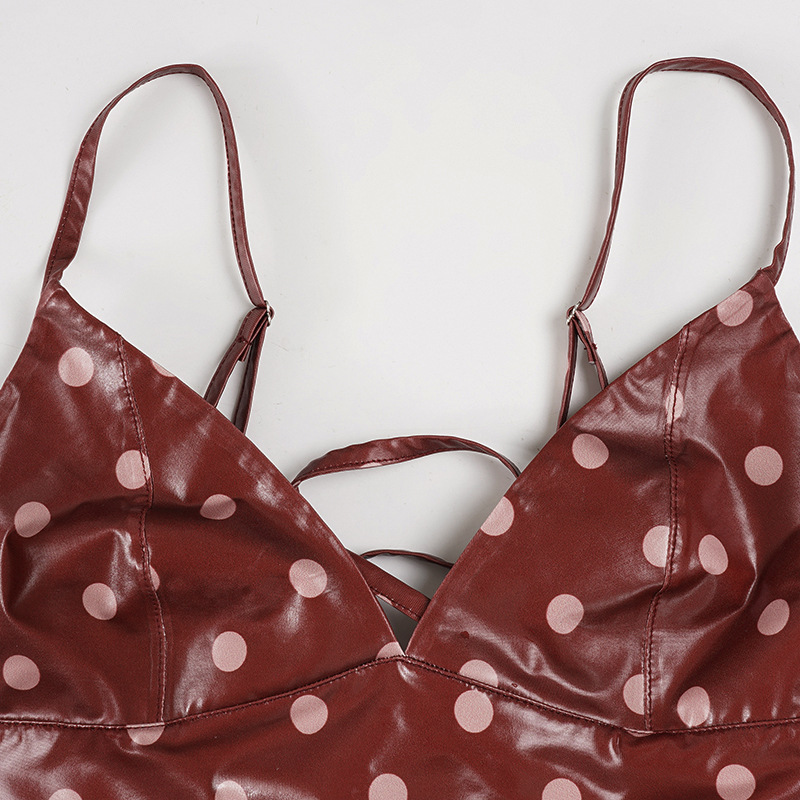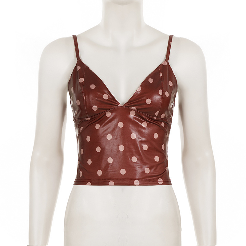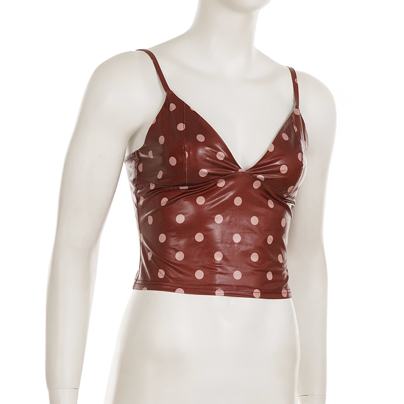 Polka Dot V-neck Leather Camisole For Women, Slim-fit And Versatile