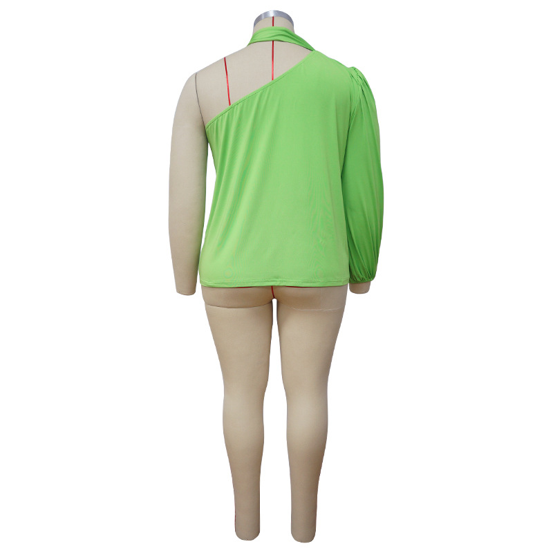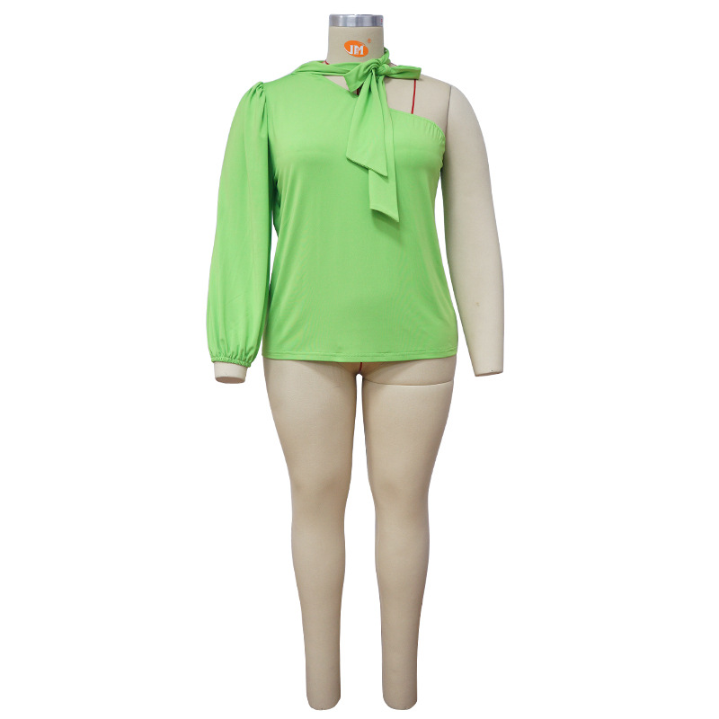 Solid-color Off-shoulder Long-sleeve T-shirt Plus-size Top