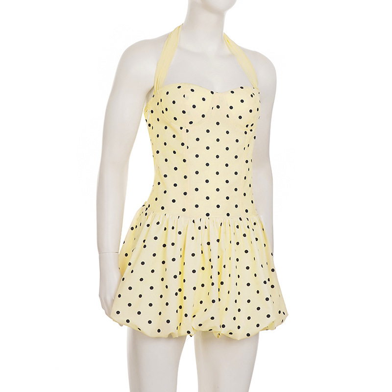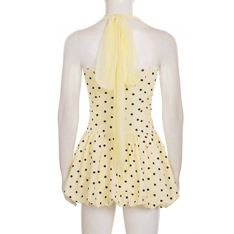 Womens Stylish And Elegant Polka-Dot Ribbon Halter Dress