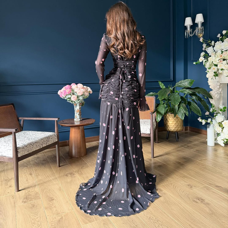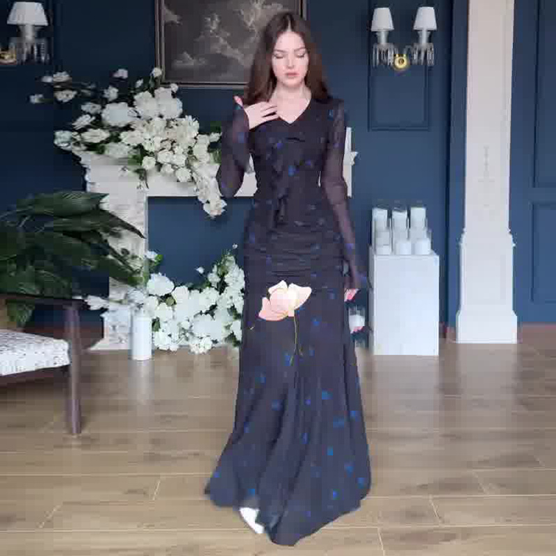 Womens Stylish V-neck Cinched-waist Floral Elegant Dress