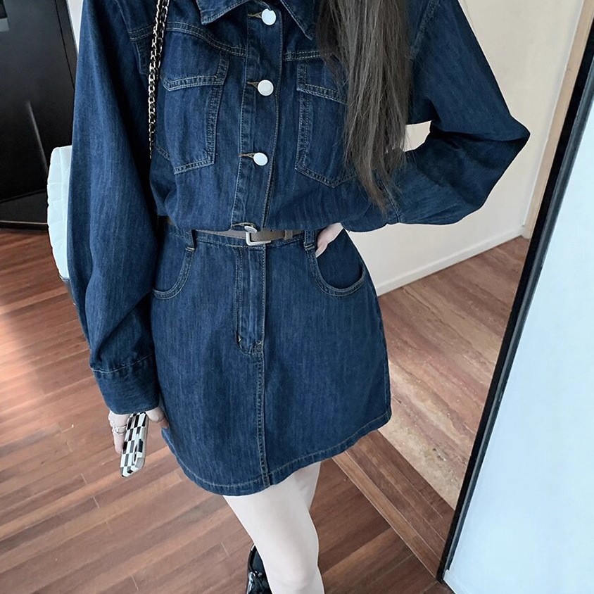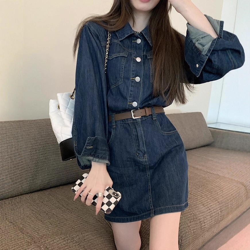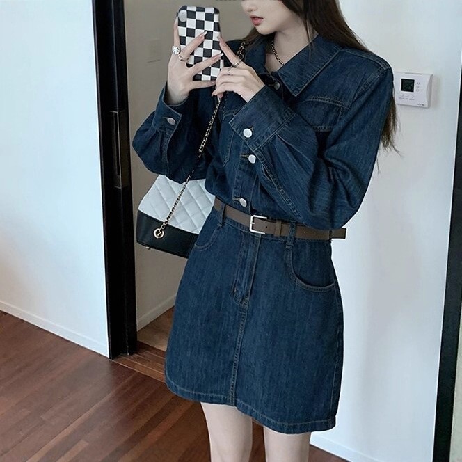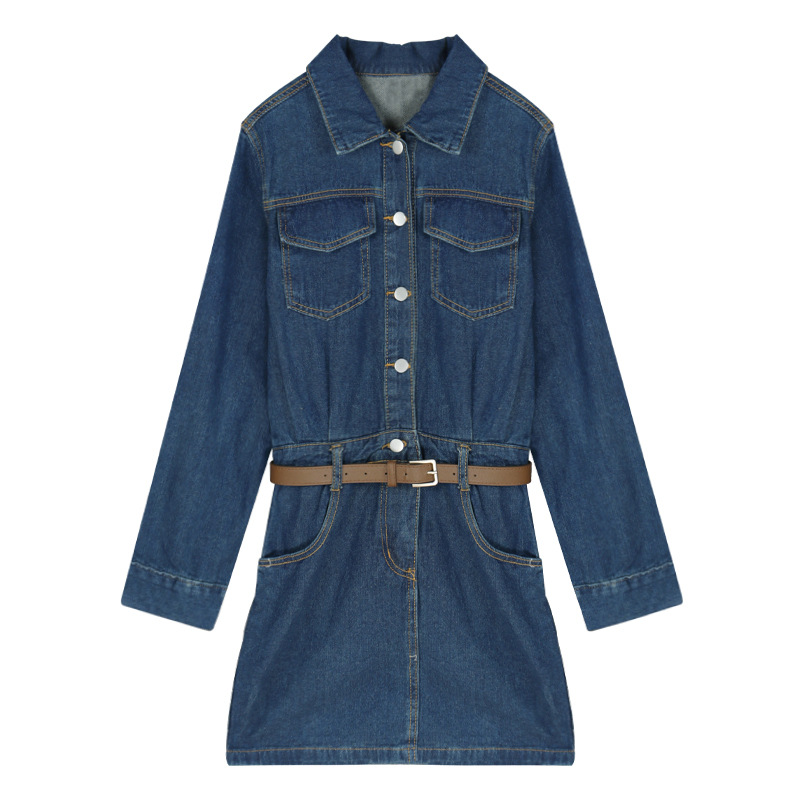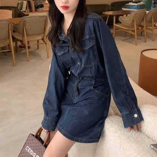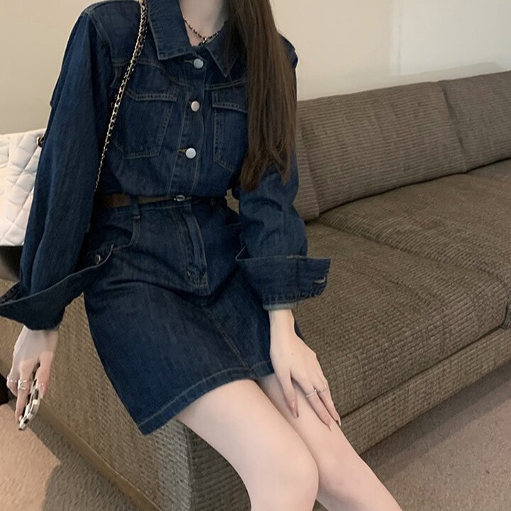 Womens Vintage Denim Dress With A Fitted Waist For A Slimming Look