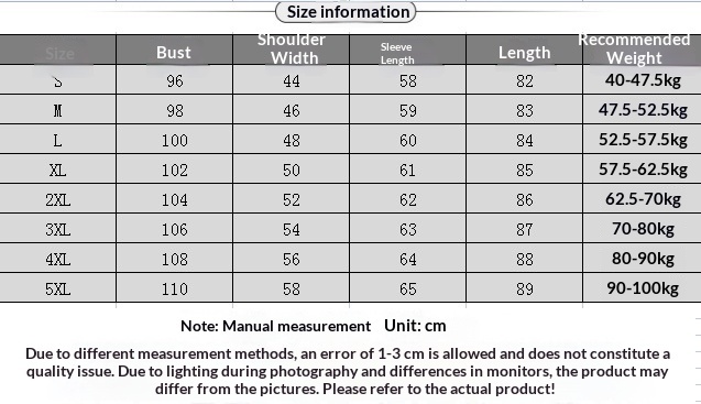 1. Asian sizes are 1 to 2 sizes smaller than European and American people. Choose the larger size if your size between two sizes. Please allow 2-3cm differences due to manual measurement. 2. Please check the size chart carefully before you buy the item, if you don't know how to choose size, please contact our customer service. 3.As you know, the different computers display colors differently, the color of the actual item may vary slightly from the following images.
