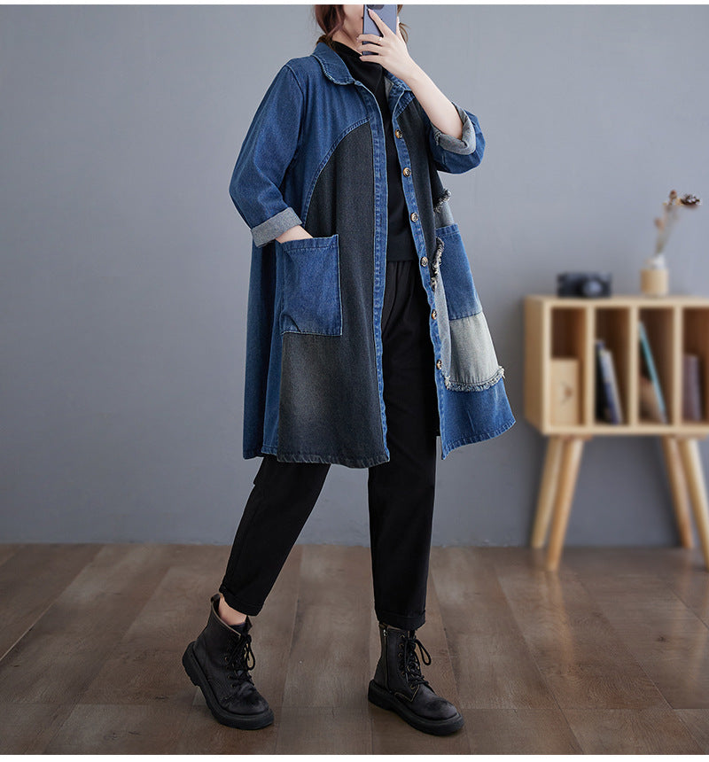 Autumn Japanese New Retro Wash Plus Size Denim Coat